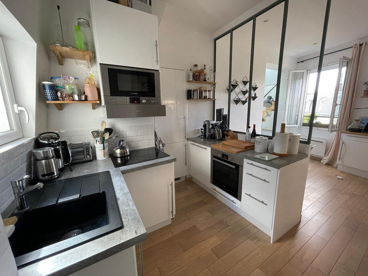 Luxe gerenoveerd appartement in Parijs 17, tussen Monceau en Batignolles. Helder, stil en elegant, met hoge plafonds, visgraatparket en hoogwaardige afwerkingen. • Queensize bed + slaapbank • Volledig uitgeruste keuken met marmeren bar • Italiaanse inloopdouche Een echt boetiekhotelgevoel in een gewild gebied. Perfect voor stellen, gezinnen of zakelijke verblijven. Snelle wifi en smart-tv inbegrepen.