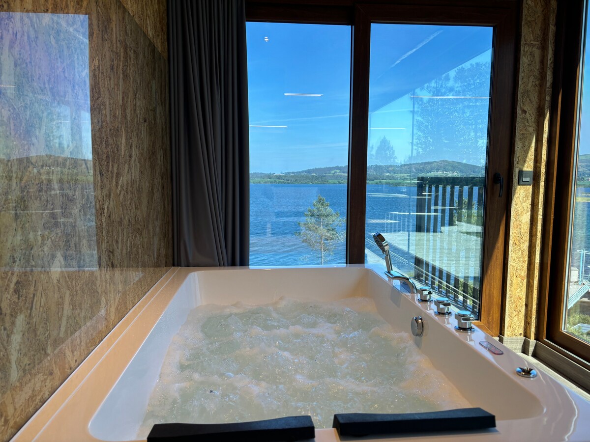 November is een hut van 30 m² met een luchtvaartthema. Vanuit deze accommodatie kun je genieten van een ongeëvenaard uitzicht op het A Fervenza-reservoir. De bungalow is uitgerust met: - Slaapkamer met queensize bed - Buitenjacuzzi. - Tv. - Gratis wifi. - Volledig uitgeruste badkamer en keuken-woonkamer. - Verwarming en airconditioning. - Haardroger. - Eigen tafel en stoel buiten.
