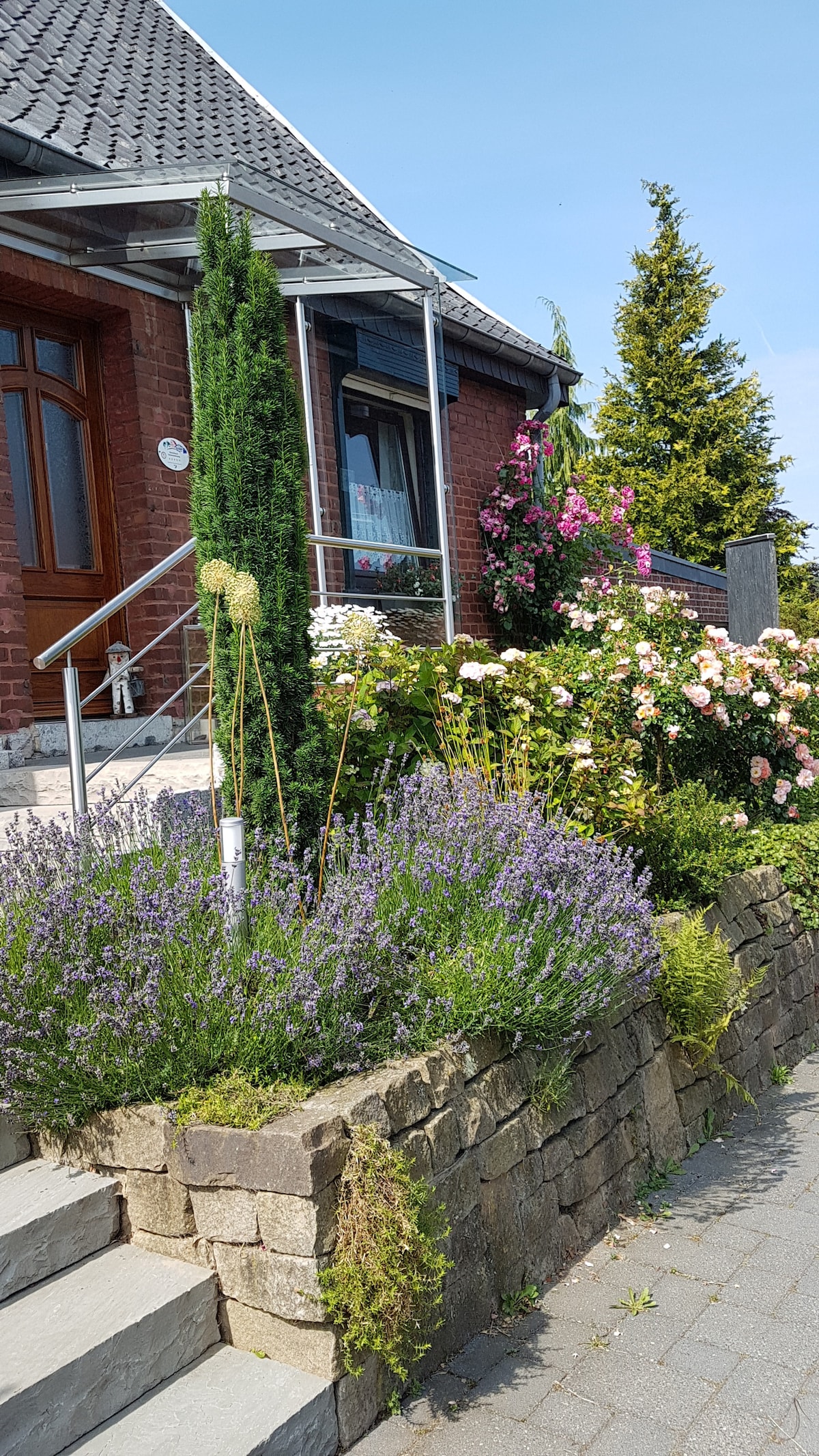 Vergeet je zorgen in deze ruime & rustige ruimte. In het 2015 volledig gemoderniseerde en voortdurend verfraaide huis met 152 vierkante meter, maximaal 8 personen plus 2 baby's hebben genoeg ruimte , het huis is voorzien van vloerverwarming, hoogwaardige keuken, wasruimte, wasmachine, droger, 2 badkamers , 1x douche en 1x douche en bad. 3 slaapkamers elk 1 tv .WLan. . Grote woon-eethoek open keuken, woonkamer met open haard. Een prachtige tuin, dichte schermaanplant, overdekt terras.