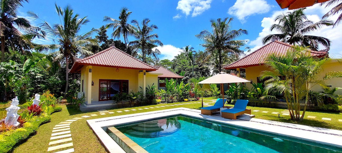 Een kleine villa in Ubud ontworpen klassiek modern met Ubud vibes. Die wordt beheerd door de familie die eigenaar is van de villa. Villa 's hebben de vorm van huizen op Bali, maar hebben geen houtsnijwerk zoals de typische kenmerken van huizen op Bali in het algemeen. Voor ons zijn het comfort en de gastvrijheid van de gasten erg belangrijk voor de kwaliteit van de vakantie. Met de locatie van de villa die naar binnen gaat en uitkijkt op de rijstvelden draagt bij aan de indruk van een rustgevende sfeer