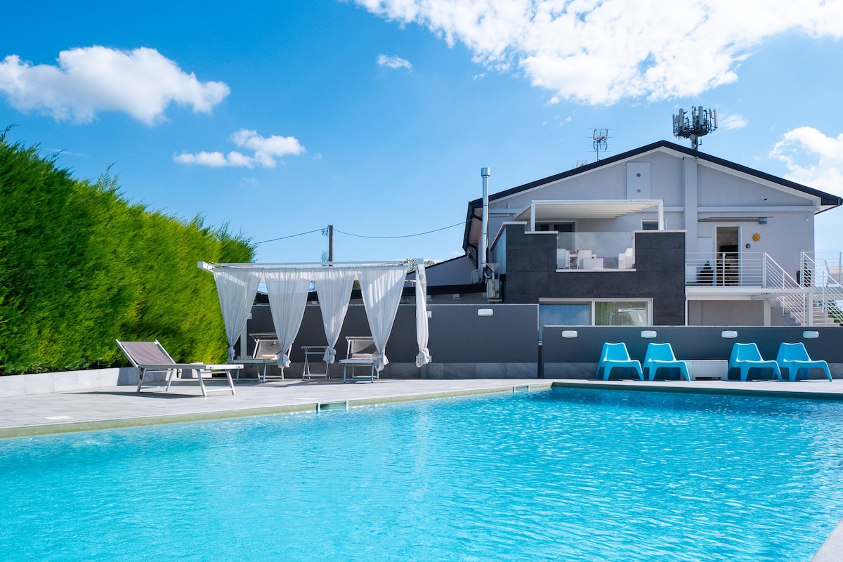 Domus Adelina is een elegant modern rustiek, ondergedompeld in het groen van San Germano dei Berici met een prachtig zwembad. Hier vind je de perfecte combinatie van comfort en rust voor je verblijf: - Grote woonkamer met open keuken - Moderne en volledig uitgeruste keuken - 1 bank met 2 bedden geschikt voor kinderen - Tweepersoonskamer - Kinderbed en kinderstoel - Badkamer met douche - Zwembad - Badkamer en buitendouche in het zwembad - Pic nic gebied - Sauna buiten -hottub in de winter
