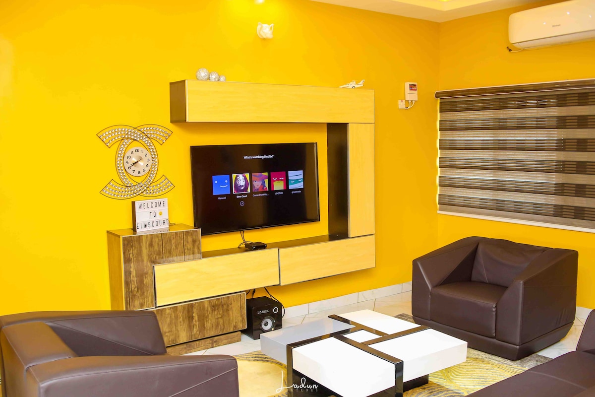Dit moderne appartement met 2 slaapkamers is ideaal voor gezinnen en vrienden, en biedt comfortabel plaats aan maximaal 4 gasten. Geniet van 24 uur elektriciteit met een 20kVA omvormer, wat zorgt voor ononderbroken airconditioning in beide slaapkamers. De woonkamer heeft een 65 inch Smart TV en actieve abonnementen zijn al aangemeld. Het appartement beschikt over een volledig uitgeruste keuken, tv's in beide slaapkamers en schone badkamers met gratis toiletartikelen. Maximaal vier gasten. Extra gasten = extra kosten.