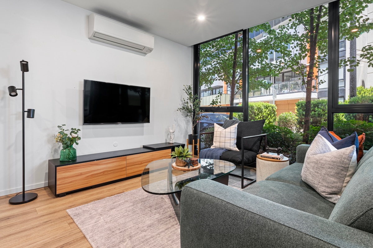 Architectuur van Peddle Thorp het appartement is ~50 m ² groot. Er is een slaapkamer met een queensize bed, een woonkamer met een leren bank met 3 zitplaatsen, een douche en een volledig uitgeruste keuken. Dit mooie appartement is gelegen in het hart van Moonee vijvers. Met bus en tram voor de deur en het treinstation ligt op 650 meter afstand. Je hebt toegang tot het volledige openbaar vervoer van Melbourne. CBD, universiteiten, ziekenhuizen en luchthavens liggen snel te bereiken. Deze locatie is het paradijs van Walker met een wandelscore van