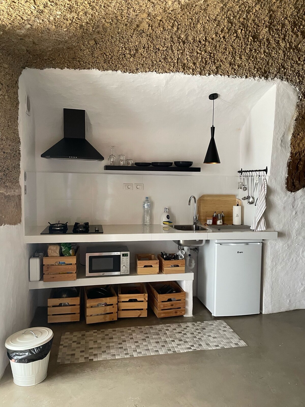 Alquiler Casa Cueva VV Komm an diesem unvergleichlichen Rückzugsort wieder in Einklang mit der Natur. Enjoy the comfort of this cavehouse with projector, two double beds and a huge 3x4m semicircular couch/bed , a private 16m2 roof top terrasse to enjoy breathtaking sunrises, stargazing, a cold beer after the beach or daily yoga facing the rising sun. Feel free to use the 2 ha shared space with pool and outdoor gym; around is only nature paradise with wild hiking trails. 15-minute drive to beach
