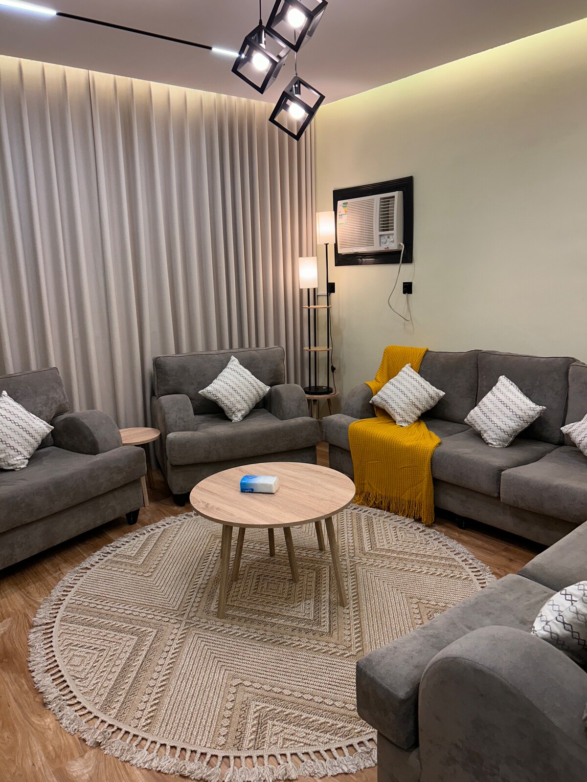 Een elegante studio met zelf inchecken, ontworpen in comfortabele kleuren, ingericht met modern meubilair, er is een 75-inch scherm, Netflix en YouTube-abonnement, en het bevat koffie en water gastvrijheid en uitgerust met alle douchehulpmiddelen, gekenmerkt door zijn grote oppervlakte en volledige privacy met slimme toegang en dicht bij Jazan University en de Universiteit Zee, en het is 8 minuten rijden van de luchthaven en 5 minuten rijden van de Boulevard en Al-Rashed Mall, en er zijn alle diensten in de buurt, waaronder restaurants, wasserette, kapper en cafés. Ontworpen voor jouw comfort, ik wens je een gelukkig verblijf...