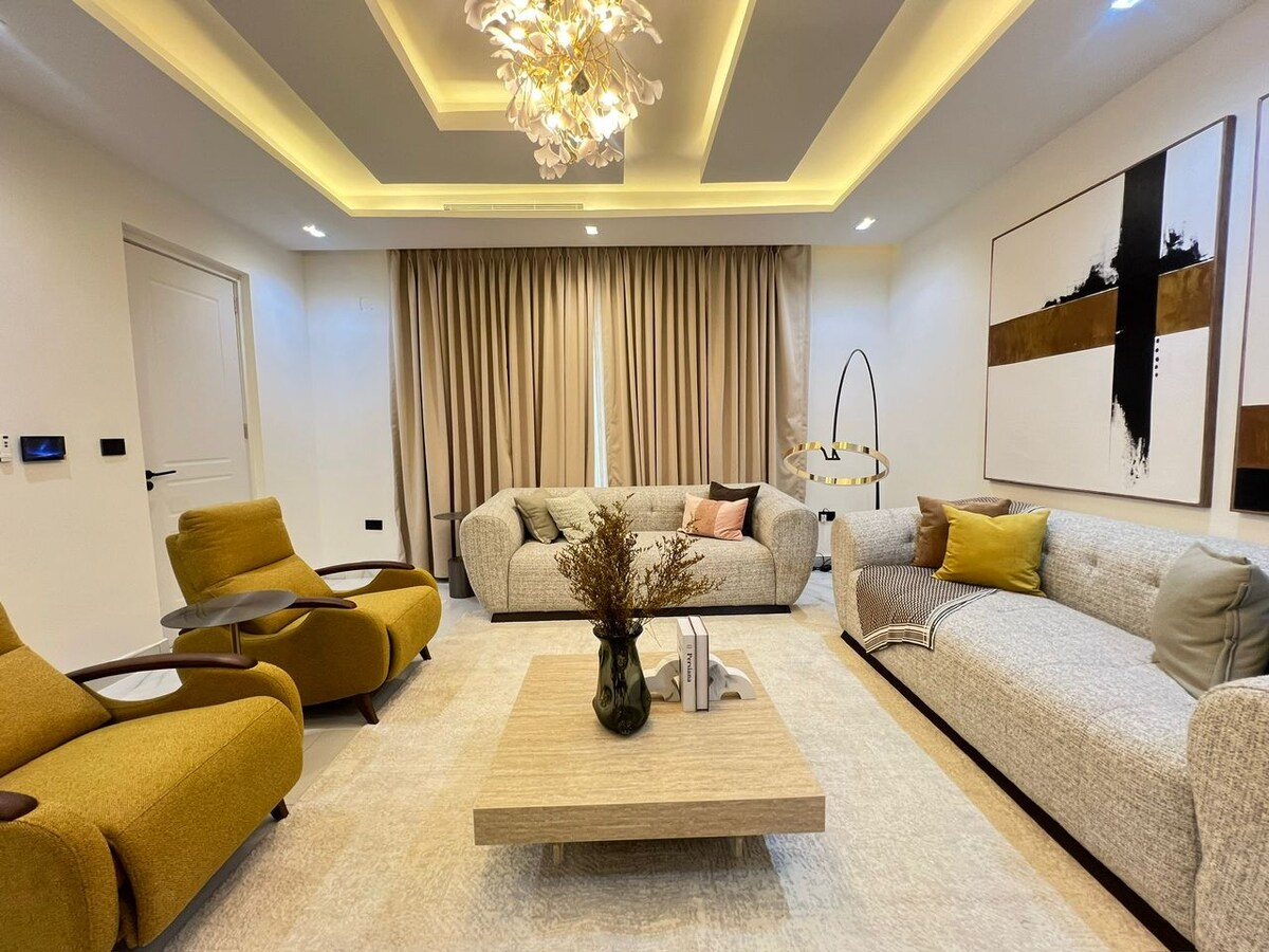 Deze eigentijdse slimme woning beschikt over 5 grote slaapkamers met eigen badkamer, 2 zitkamers, een eethoek, keuken met hoogwaardige apparatuur. Het open dak bestaat uit: thuisbioscoop, snooker, hangmat, traditionele geweven strostoelen voor rillingen en ontspanning. Eigentijdse voorzieningen omvatten: glasvezel WiFi, 5kVA Tesla-omvormer, plafondluidsprekers, CCTV, intercom, wifi slimme lichtschakelaars, 24-uursbeveiliging, airco, wasmachine, parkeerplaats voor twee auto 's. Games: PS5, schaken, snooker, scrabbles.