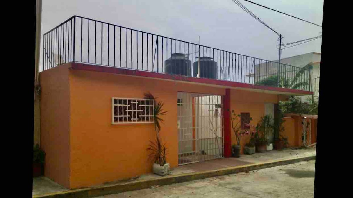Cabaña en segundo piso, arriba de vivienda anexa, frente a la avenida principal, y a unos metros de la playa. Cochera compartida con una vivienda que se encuentra en la parte de atrás de la cabaña. La alberca es parte del área común y se comparte con huéspedes de otra habitación. Cuento con una mascota por lo cual no se aceptan Otras.