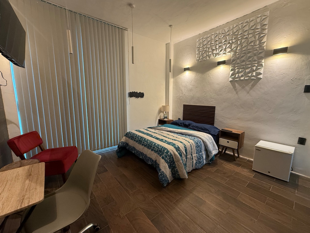 Ontdek de suite in gebouw 8, een minimalistische en luxe accommodatie in het hart van Acayucan. Op slechts een steenworp afstand van het paleis en het stadscentrum, geniet van een comfortabel, elegant en perfect gelegen verblijf.