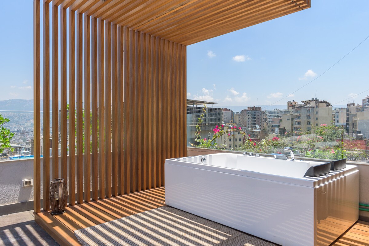 Welkom in deze moderne, industriële eenkamerflat gelegen in Achrafieh, waar je rond kunt dwalen in de omgeving en dan genieten van je vers gezette kopje koffie in een van de cafés verderop in de straat. Houd er rekening mee dat het dak en de jacuzzi geen plafond hebben, dus ze kunnen niet worden gebruikt tijdens regenachtig weer.