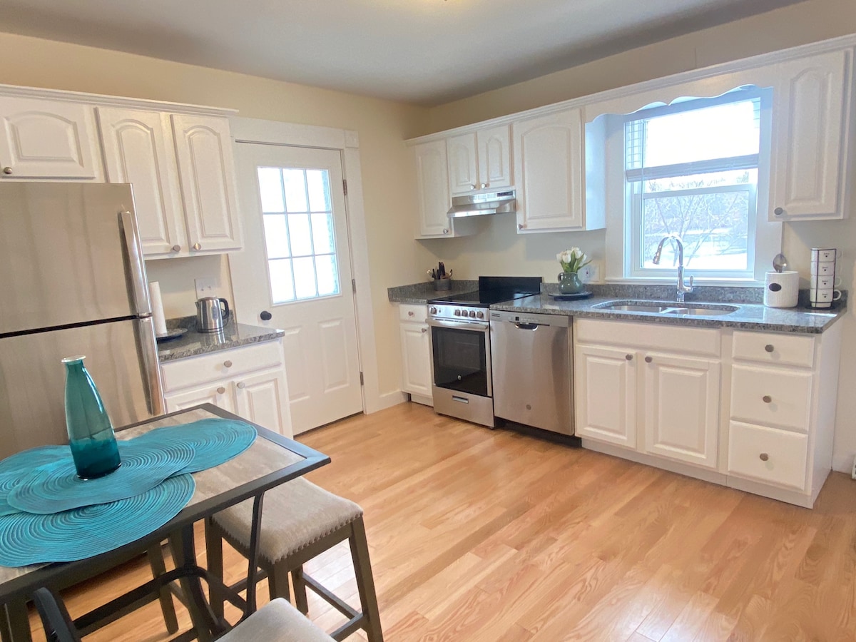 Deze stijlvolle, privéplek is perfect voor een stel, klein gezin of groepen van 4. Slechts enkele minuten van Boston of de Noordkust. Reis met de auto, Uber of lokale trein om te genieten van excursies naar Boston, Salem-heksen, antiek in Cape Ann, zandstranden, herfstbladeren, skiën, historische bezienswaardigheden, sportevenementen, diploma-uitreikingen en winkeltherapie in nabijgelegen winkelcentra, outlets of ionische Newbury St. Een groot aantal lokale en stadsrestaurants en brouwerijen bieden een scala aan opties voor je plezier. YMCA naast de deur!