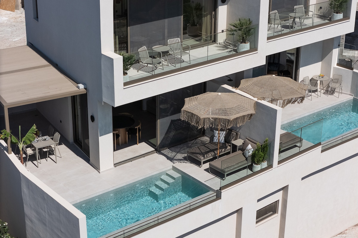 Galux Pool Homes bieden de perfecte mix van moderne luxe en Kretenzische charme, gelegen op de heuvels van Agia Galini met een prachtig uitzicht op de Libische Zee en het pittoreske dorp eronder. Deze twee privévilla's zijn zorgvuldig ontworpen voor zowel ontspanning als stijl. Elke villa beschikt over een ruime open woonkamer op de begane grond, compleet met Smart TV, airconditioning en een volledig uitgeruste keuken voor moeiteloos zelfvoorziening. Een handig gastentoilet bevindt zich ook op de begane grond.