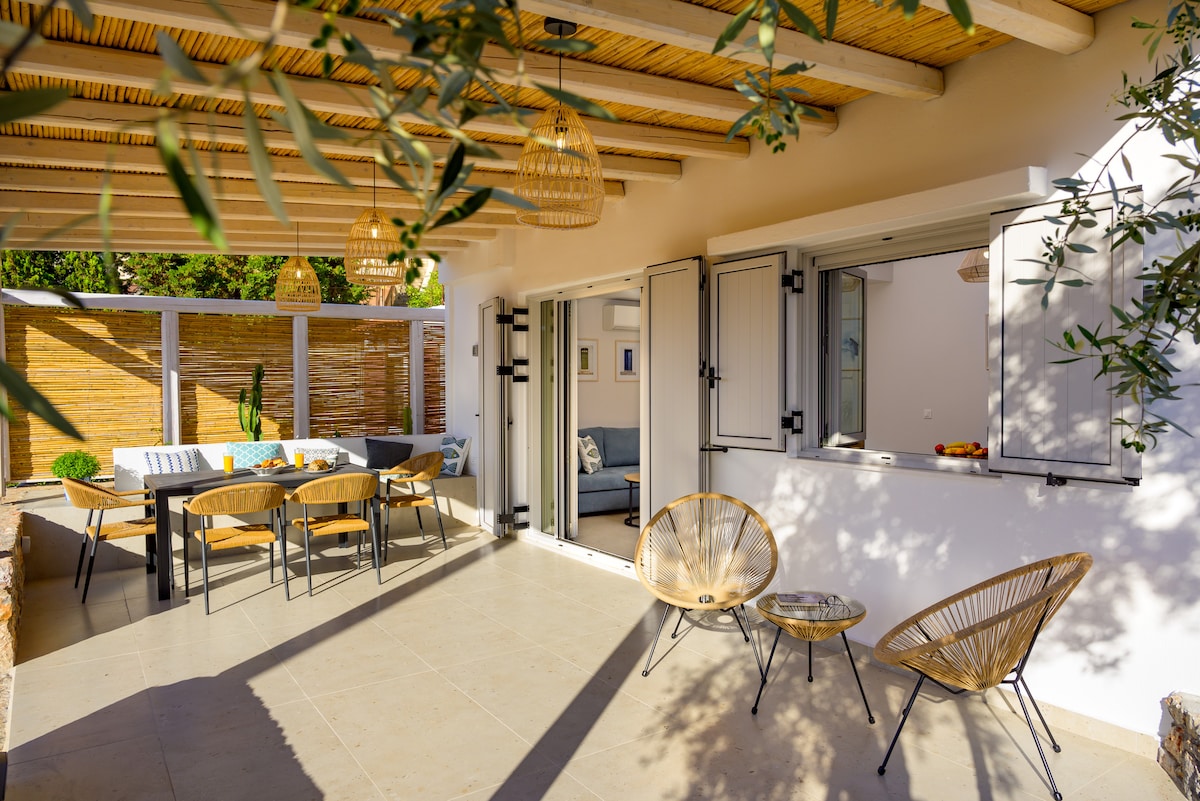 Welkom in je eigen stukje Grieks paradijs, op slechts 50 meter van de zee, waar de tuin bloeit met zonneliefhebbende cactussen en het enige schema het ritme van de golven is. Deze stijlvolle bungalow met 2 slaapkamers is perfect voor stellen, gezinnen of vrienden die niet alleen een plek zoeken om te verblijven, maar ook een plek om te ademen. Met eigen parkeerplaats, airconditioning en betrouwbare wifi is comfort eenvoudig. Slechts 1,2 km van de snelweg voor moeiteloos eilandverkenning.