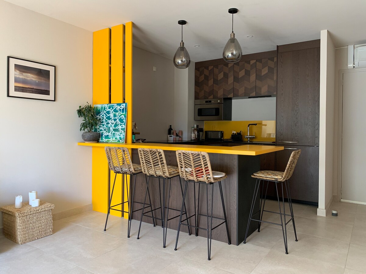Voor je volgende verblijf in Carnon-Plage: de Casa Azul Suite, een moderne cocon gericht op ontspanning en ideaal voor een verblijf met z'n tweeën. Geniet van een bubbelbad, een comfortabel queensize bed met een plafondspiegel en een balkon met uitzicht op de haven en de Orvijver. Omkeerbare airconditioning, privéparkeerplaats en volledig uitgeruste keuken maken deze plek compleet, ontworpen voor comfort en ontsnapping. Ideaal voor een romantisch uitje, op slechts enkele minuten van Montpellier en de stranden.