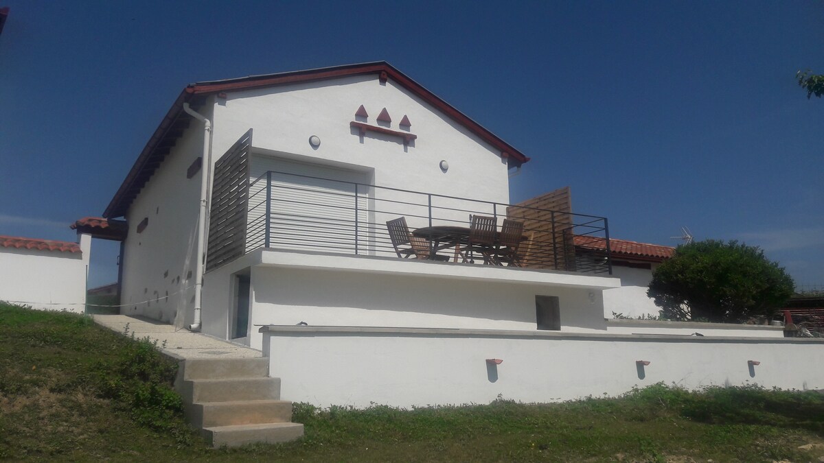 Vakantiewoning 2 personen 28m²(mogelijkheid om te komen met een baby, in de buurt van een bed) , blootgesteld Zuid en West , groot terras, uitzicht op de bergen, rustig, 200 m van Itxassou dorp, dat veel winkels heeft (bakker, slager, restaurants, bars...). Het dorp ligt aan de voet van de bergen en op 30 minuten van de stranden. Voor juli en augustus verhuren van zaterdag tot zaterdag Ik ben een sportdocent en ik bied wandelen , nordic walking, initiation trail with a preferential rate for cottage tenants.