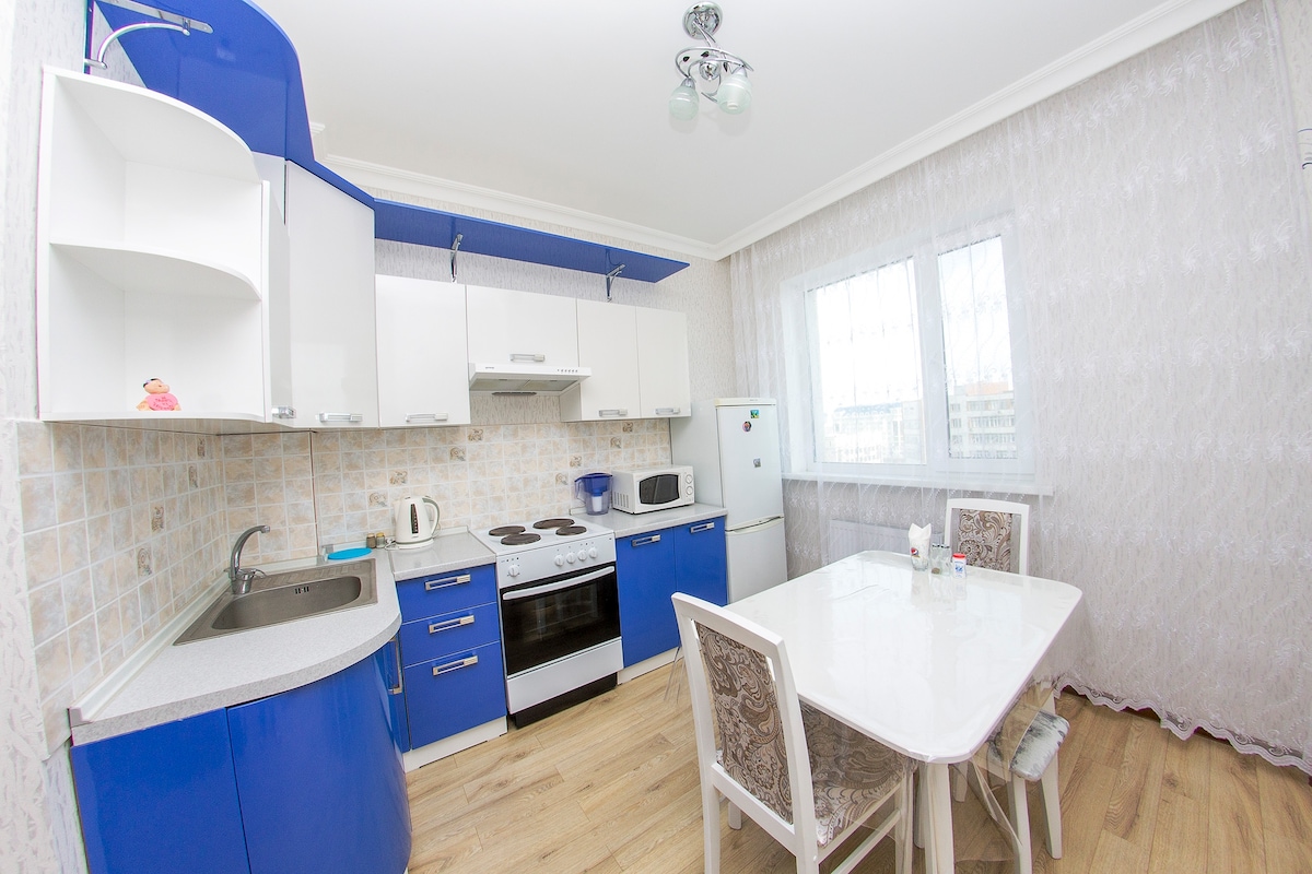 Er is alles voor een comfortabel verblijf: High-speed internet en smart-tv Uitgeruste keuken; airconditioning; schone lakens en handdoekensets 7 bedden: twee eenpersoonsbedden met orthopedische matrassen + tweepersoonsbed+ slaapbank+opklapbed. Capital Center. Zeer ontwikkelde infrastructuur, EXPO district. Op loopafstand zijn de sportcomplexen Barys arena, enz., de botanische tuin, medische centra (cardiosurgery, enz.), winkelcentra: Mega silk way, enz.
