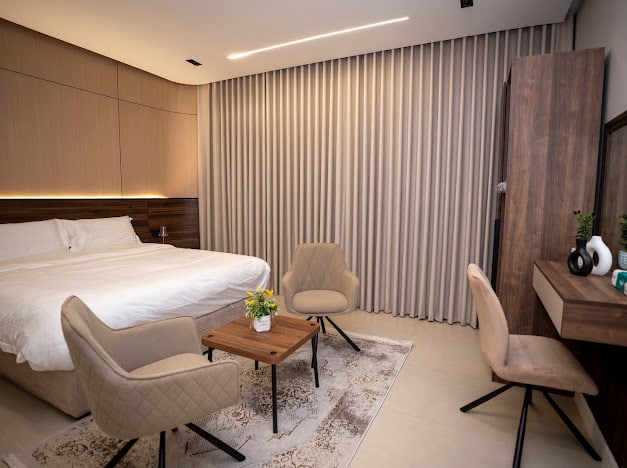 Experience AlUla from the comfort of a beautifully designed two-bedroom suite with a stunning mountain view. Enjoy a cozy living room, private outdoor seating, a complete coffee corner, and a fully equipped kitchenette. Ideal for couples or small families looking for a peaceful, premium stay. سويت أنيق بإطلالة جبلية ساحرة في العلا. غرفتا نوم، صالة مريحة، جلسة خارجية، ركن قهوة، ومطبخ متكامل. مناسب للباحثين عن الهدوء والخصوصية بتصميم عصري فاخر