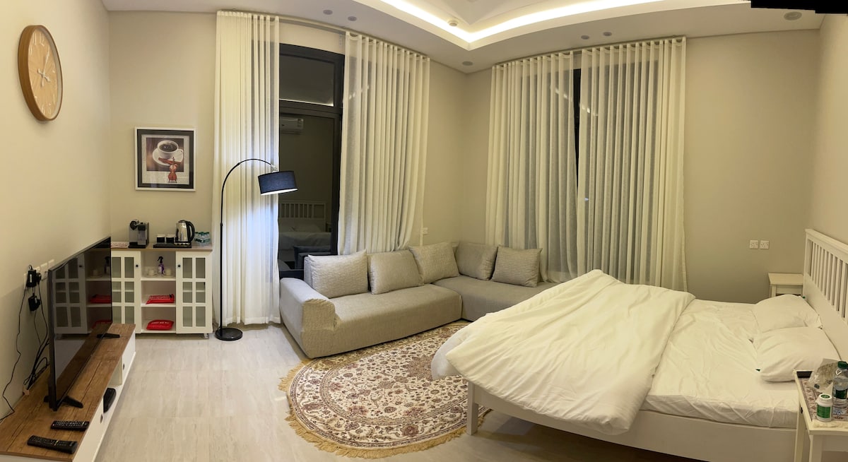 Ervaar de perfecte mix van comfort en verfijning in dit prachtig ontworpen luxe studio-appartement, gelegen in een rustige en chique wijk van Riyad.Ideaal voor zakenreizigers, stellen en individuele gasten die op zoek zijn naar een kort of lang verblijf.