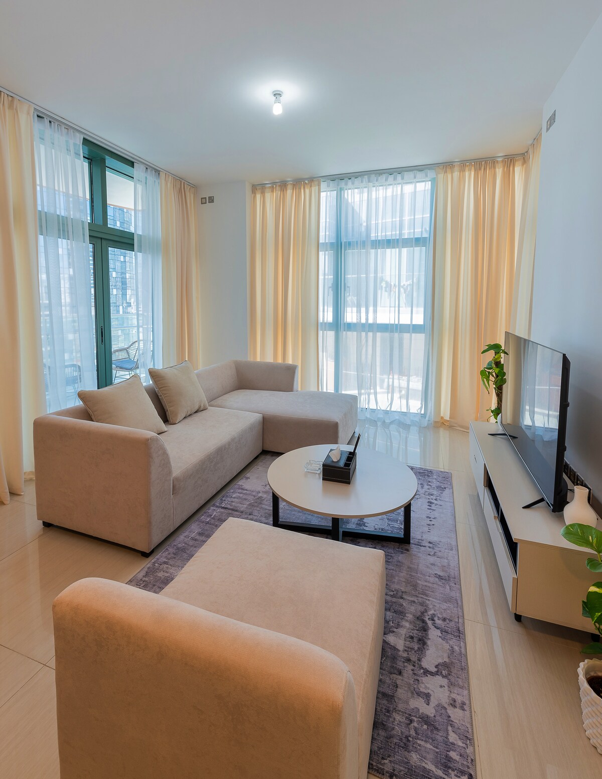 Enjoy a refined stay in this modern, fully furnished serviced apartment located in Shams Meera on Al Reem Island, just minutes from ADGM on Al Maryah Island. Designed for comfort and convenience, the apartment offers a bright open-plan layout with contemporary interiors, making it an excellent choice for business travelers, corporate stays, and leisure guests alike. With close proximity to supermarkets, cafés, and waterfront walkways, along with access to premium on-site amenities.