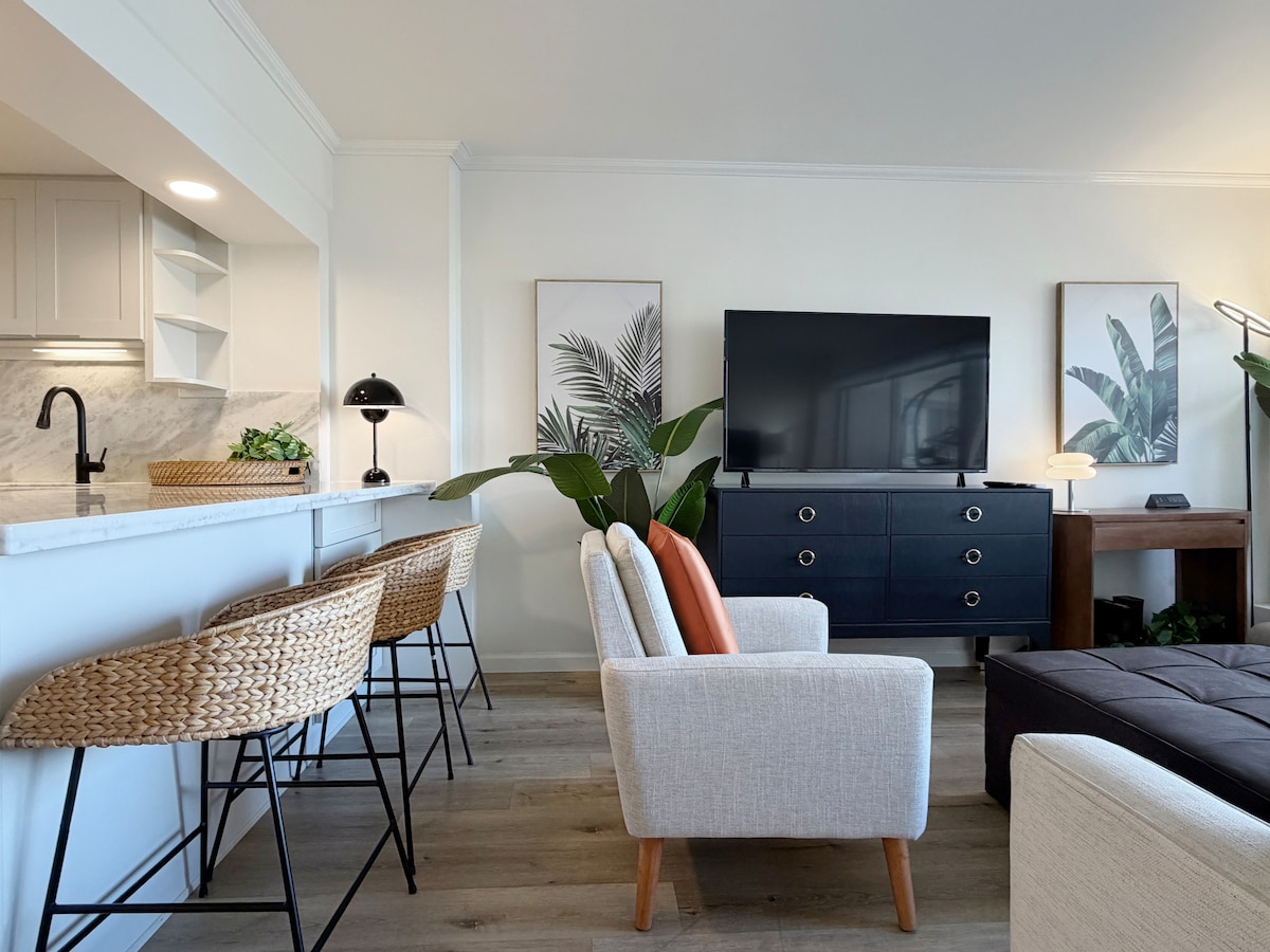 APPARTEMENT - Ons gerenoveerde appartement aan het strand met 1 slaapkamer/1 badkamer van 56 m2. Het strand ligt op een steenworp afstand, uitzicht op de stad op onze locatie aan het strand. Schuifdeuren die slaapkamer/woonkamer scheiden. Geniet van de tropische sfeer en het chique design, volledig gevulde keuken, airconditioning, extra groot privébalkon, op loopafstand van het historische en wereldberoemde Waikiki Beach! Ons gebouw biedt een surfwinkel in de lobby en een fantastisch gebied voor surflessen. Er zijn TWEE geweldige zwembaden voor jouw gebruik. 100% legale verhuur