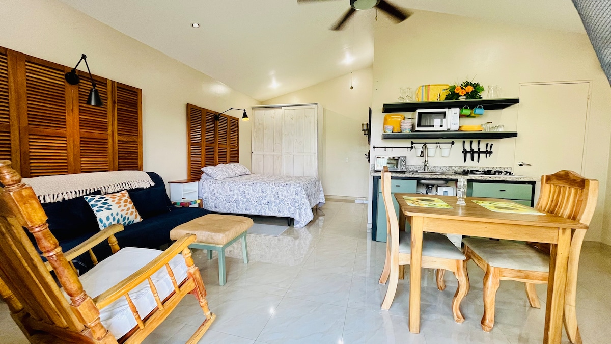 Deze ruimte is erg rustig, verbeterd om vanaf je eigen terras van de natuur te genieten. Het biedt een studio gevoel met de grootte van een Casita, biedt een Queen bed, een complete badkamer met warm water tank, kitchenette met alle benodigde kookgerei, zithoek binnen en buiten met comfortabele ruimte, ideaal voor koppels. Het bos is je achtergrond van deze gezellige ruimte, het biedt je de mogelijkheid om tropische vogelbewoners, wilde dieren en tropische bloemen te spotten vanaf je privéterras.