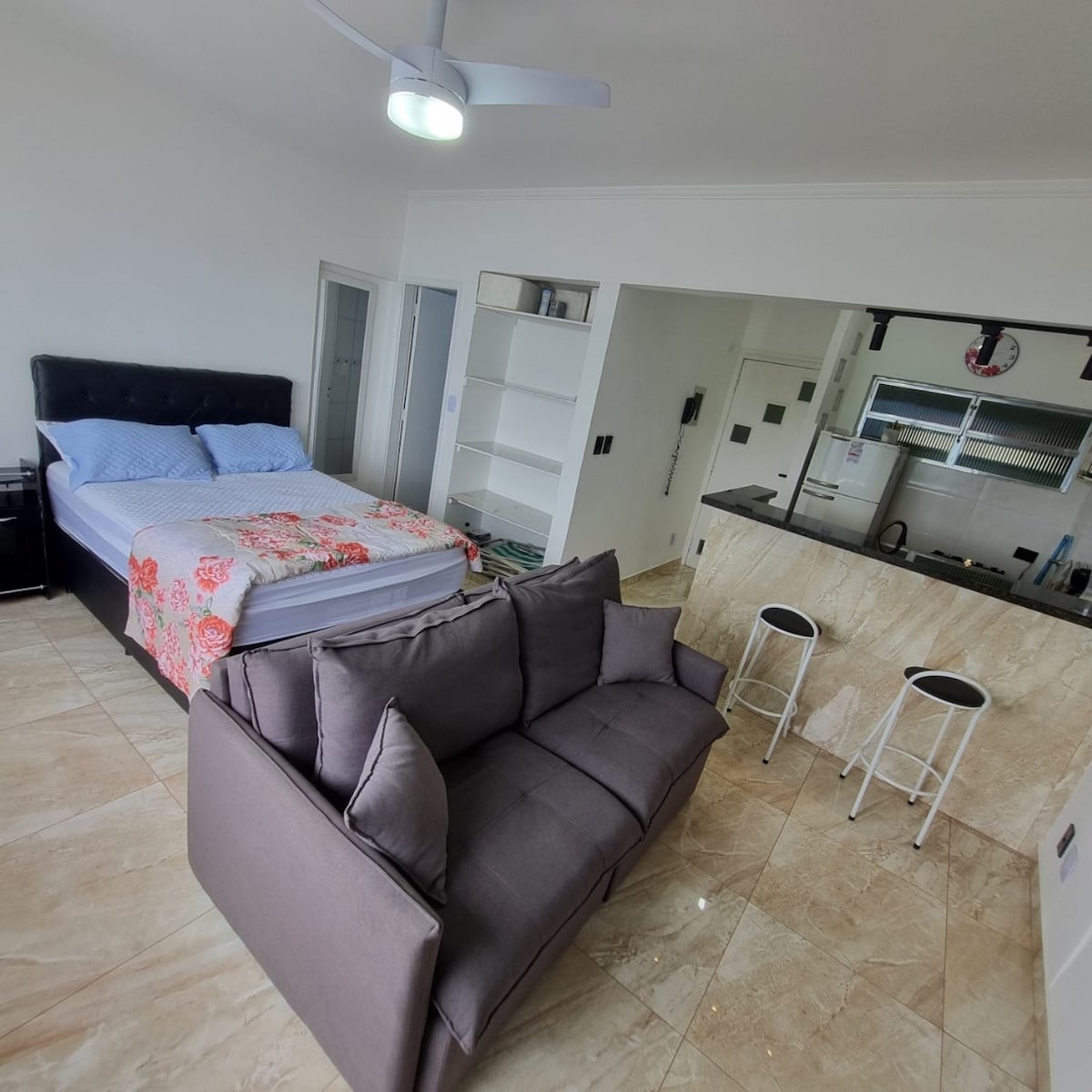 Studio op de top van Porchat Island, het beroemdste eiland aan de kust! Het appartement heeft een 24-uurs wachthuis, met alle veiligheid en gemak. Het appartement heeft een bevoorrecht uitzicht op Santos Bay en São Vicente. Fantastisch uitzicht op de zonsopgang! Comfortabel appartement, gerenoveerd, ingericht, uitgerust met apparaten, keukengerei en kasten. Het beschikt over een tweepersoonsbed en een slaapbank die comfortabel geschikt is voor een volwassene. Het ligt dicht bij het strand, bars en restaurants. Garage overdekt.