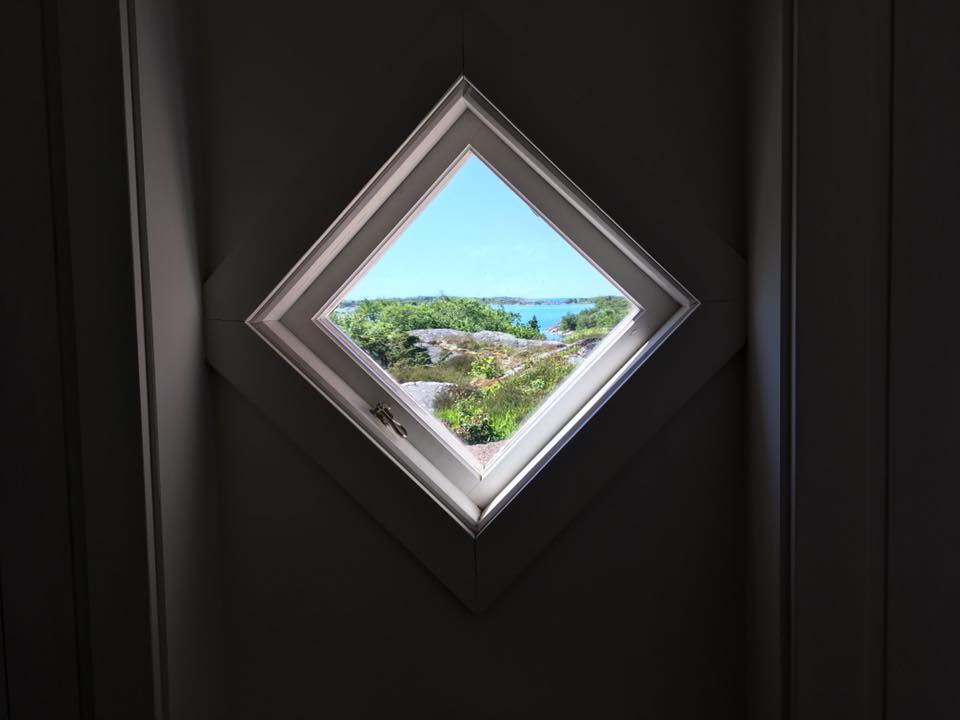 Denna unika "Tänkarstuga" invid Ålandshav närmast svenska sidan, består av ett rum med panorama fönster mot väster med utsikt över havet. Egen terrass på alla fyra sidor av byggnaden med matplats för två personer, liksom solstolar och bord för två. Stora strövområden på den närliggande halvön med sitt rika fågelliv, gör det lätt att tro att man är ensam i skärgården. Delad strand och brygga samt en separat plats där man kan njuta av en liten brasa i eldkorgen och kanske grilla något gott.