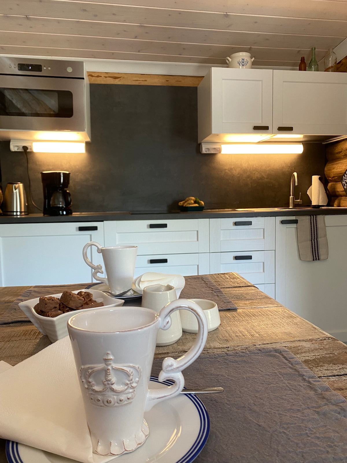 In deze unieke en rustige plek kunt u gemakkelijk ontspannen en de alledaagse drukte loslaten. De slaapkamer biedt een prachtig panoramisch uitzicht. In de zomerkeuken kunt u koken op een open vuur of op een gasgrill. De zomerkeuken en de keuken van de hut vullen elkaar perfect aan. De leuke karretjessauna wordt verwarmd met hout en biedt zachte stoombaden en een wasplaats met meerwater. Het grote terras aan het meer is waarschijnlijk de mooiste woonkamer waar u naar natuurprogramma's hebt gekeken.