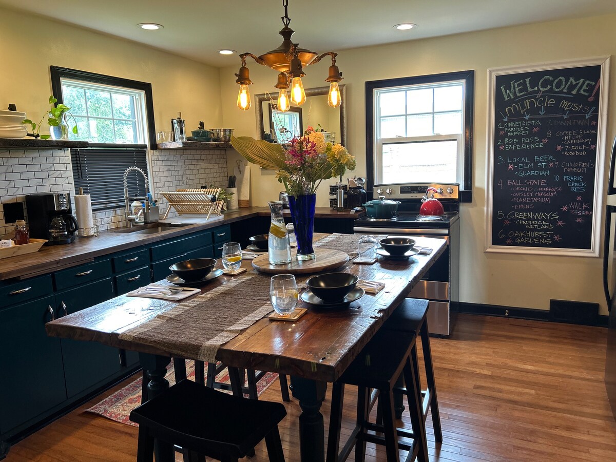 Dit mooie kleine toevluchtsoord zal je niet teleurstellen. Ik denk dat je het een ontspannende en comfortabele plek zult vinden om je tijd door te brengen in Muncie. We hebben de basis voorzien zodat het je thuis weg van huis kan zijn: volledig functionerende keuken, koffie-opties, hi speed internet, handdoeken, shampoo, conditioner, zeep, beddengoed, xfinity flex met tv en bordspellen. 1/2 mijl naar winkels en restaurants of een wandeling langs de rivier, 1 mijl naar BSU. Sluit de dag af terwijl je naar de prachtige zonsondergang kijkt.