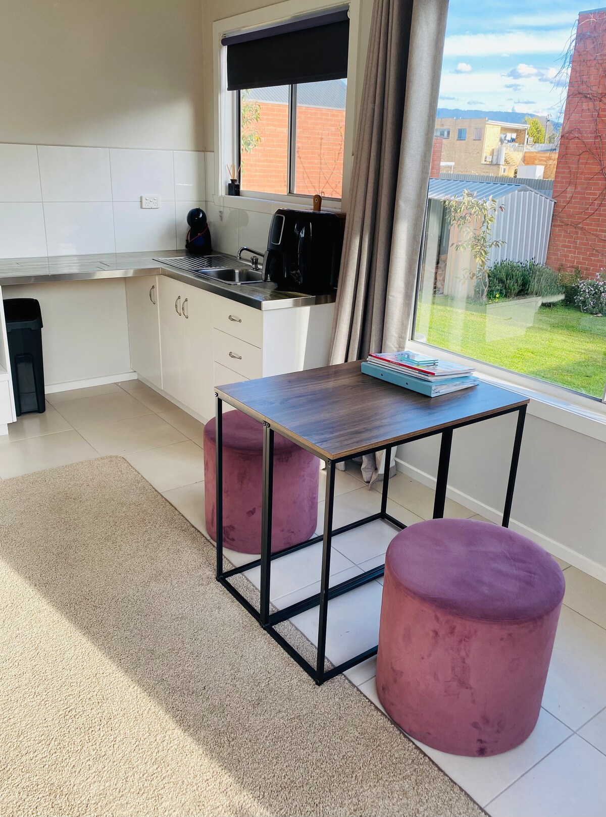 Het Tiny House in Rutherglen is eigenlijk niet zo klein, het heeft een buitenterras en bad, en een super gezellige slaapkamer. Er is ook een ander terras met een hangmat waar je kunt ontspannen onder een palmboom. De ruimte is uniek met een koele sfeer; denk aan een kruising tussen Melbourne en Bali. Het is een verborgen oase die op slechts een minuut lopen ligt van alle drie de pubs, wijnbars, restaurants en de supermarkt. Het is eigenzinnig en uniek en niet je typische huis, maar ik vind het geweldig, en ik hoop dat jij dat ook vindt.