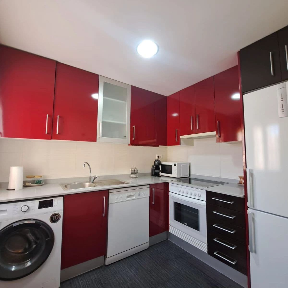 Appartement met twee slaapkamers, één met twee eenpersoonsbedden en de andere met een tweepersoonsbed. Het bevindt zich op de tweede verdieping. Het heeft een aparte badkamer, keuken - woonkamer - eetkamer. De totale capaciteit van deze plek is voor drie personen. De keuken is volledig uitgerust (koffiezetapparaat, magnetron, koelkast met vriezer, wasmachine, kookgerei, bestek, servies, schoonmaakmiddelen). De badkamer heeft daarentegen ook toiletpapier, handzeep en gel/shampoo. De bedden zijn voorzien van een kussen, lakens, deken en colcha. Daarnaast is er een extra potje mantas. Handdoeken zijn ook inbegrepen. PRIJS VOOR ÉÉN PERSOON: er is slechts één kamer beschikbaar.