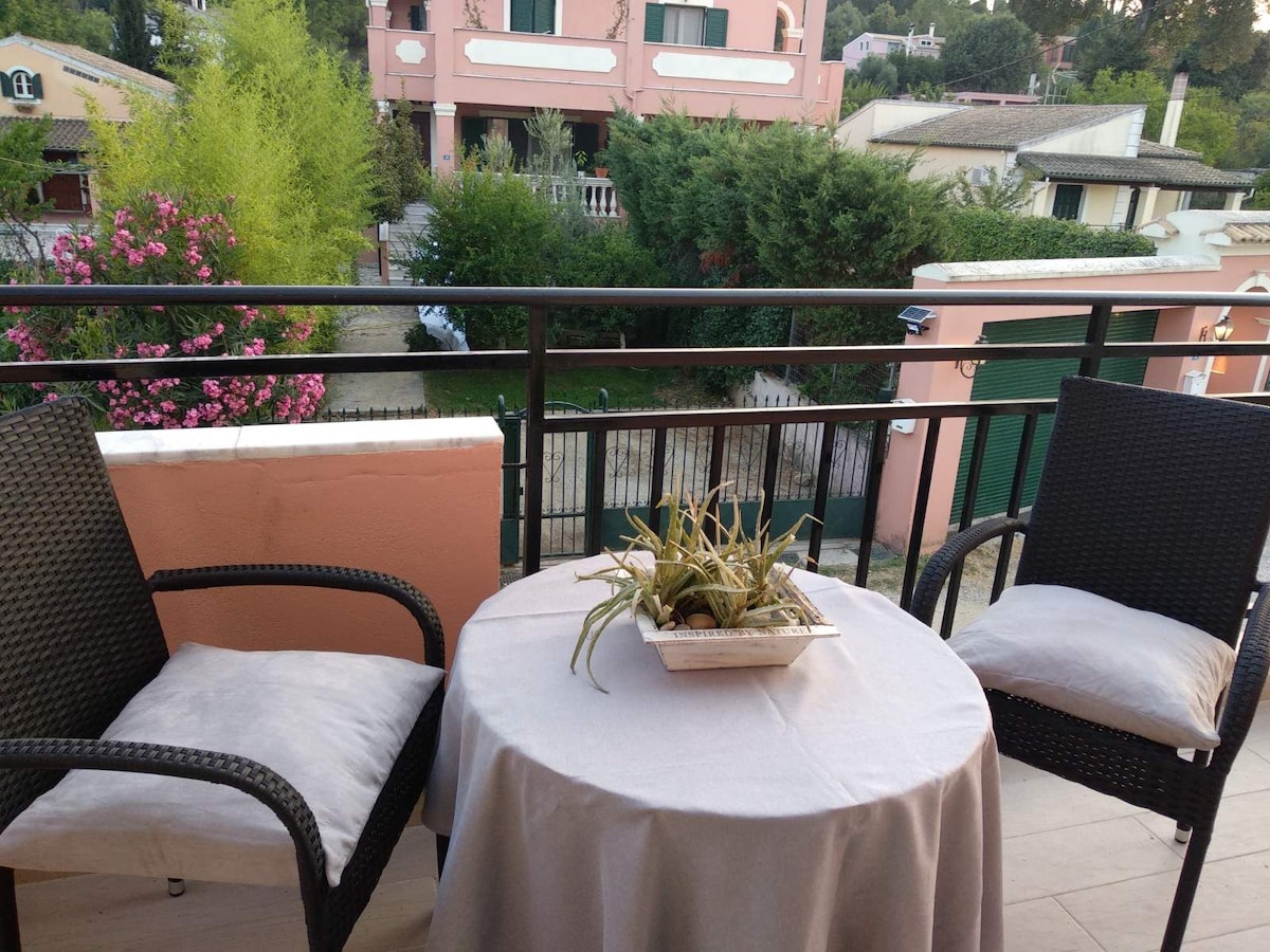 Gloednieuw appartement bij Potamos Village op 4 km van Corfu Town. Het appartement is 64m ² op de eerste verdieping in een rustige buurt op 1 km van het dichtstbijzijnde strand. De keuken heeft alle apparatuur die je kunt koken alles wat je wilt en een koffiezetapparaat voor filterkoffie. De woonkamer is voorzien van een comfortabele slaapbank en een smart TV 50' met Netflix. Ook de slaapkamer is groot en de bedden zijn zeer comfortabel met zeer goede kwaliteit slaapmatras en een grote kast. Het appartement heeft een klein balkon.