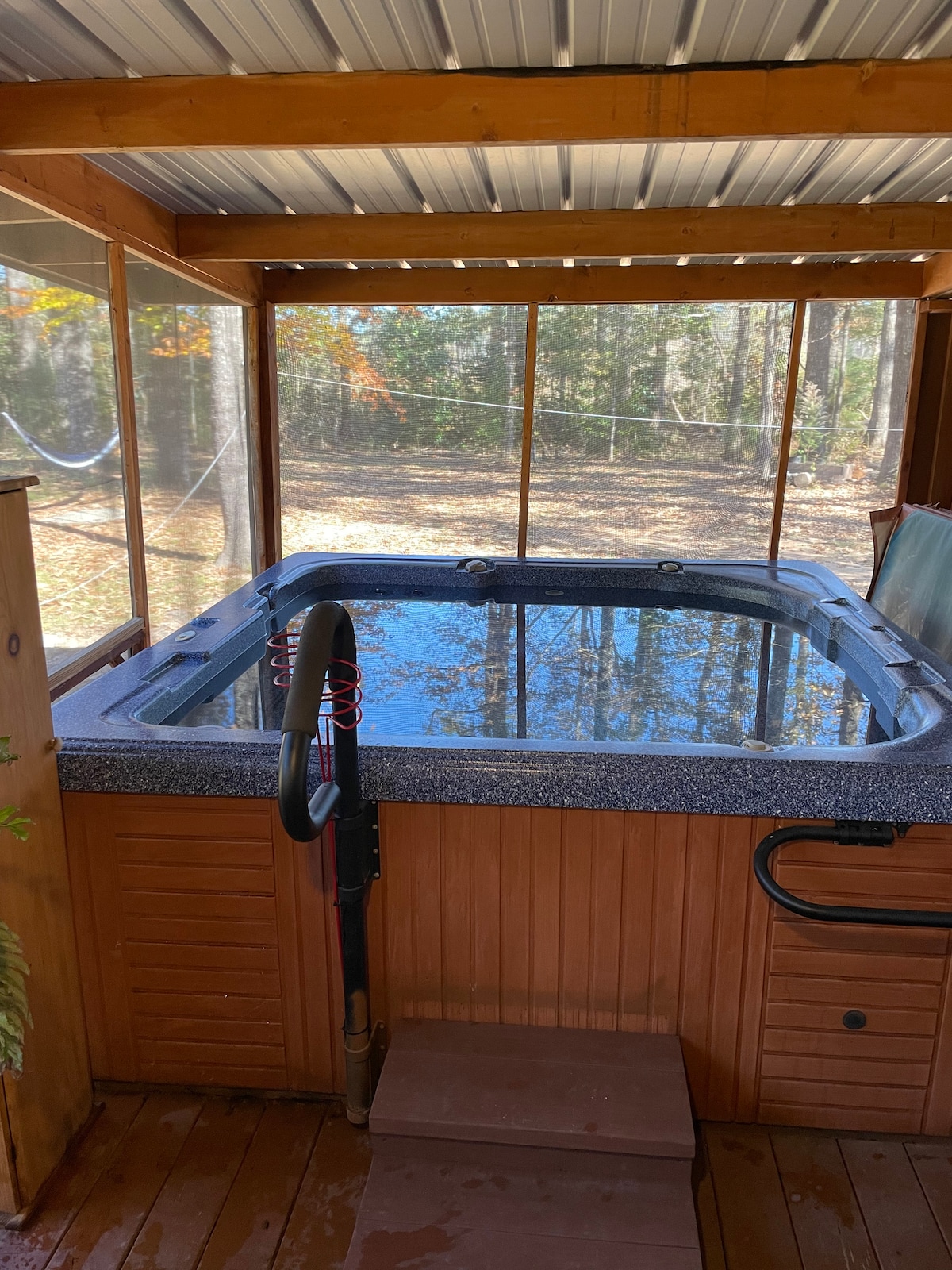 Doe het rustig aan in dit unieke uitje in de bossen van het Kisatchie Forest, op enkele minuten van Indian Creek Reservior. Geweldige kans om te wandelen in de natuur, te kajakken, te vissen of gewoon te ontspannen op de schommel/schommelstoelen op de veranda met een drankje naar keuze, terwijl je geniet van een prachtige zonsondergang en de dag achter je laat voor een met sterren bezaaide nachtelijke hemel! Wakker worden met een warme kop zonneschijn in een eigen, afgeschermde hottub, met op de achtergrond hoge dennen, ruisende bladeren en een heerlijk briesje. Ja! Hij is geweldig!