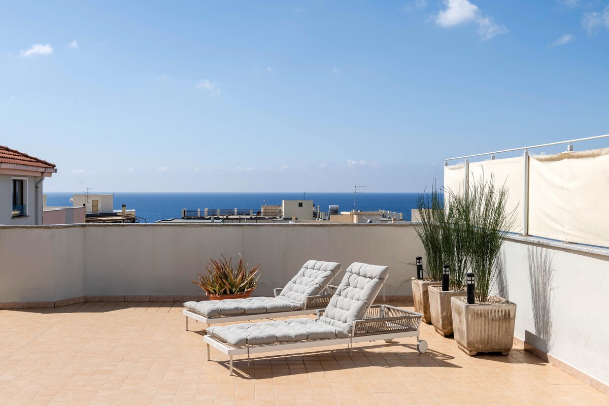 L'appartamento è un accogliente bilocale di 60 mq, modernamente arredato ed accessoriato. Si trova al TERZO PIANO di una palazzina, SENZA ASCENSORE. E' composto da sala con angolo cottura; 1 camera da letto matrimoniale; 1 bagno con box doccia. E' provvisto di lavatrice, lavastoviglie, forno elettrico, a microonde, frigo, freezer, climatizzatori. E' situato a 50 metri dal mare e a pochi passi dal centro storico.