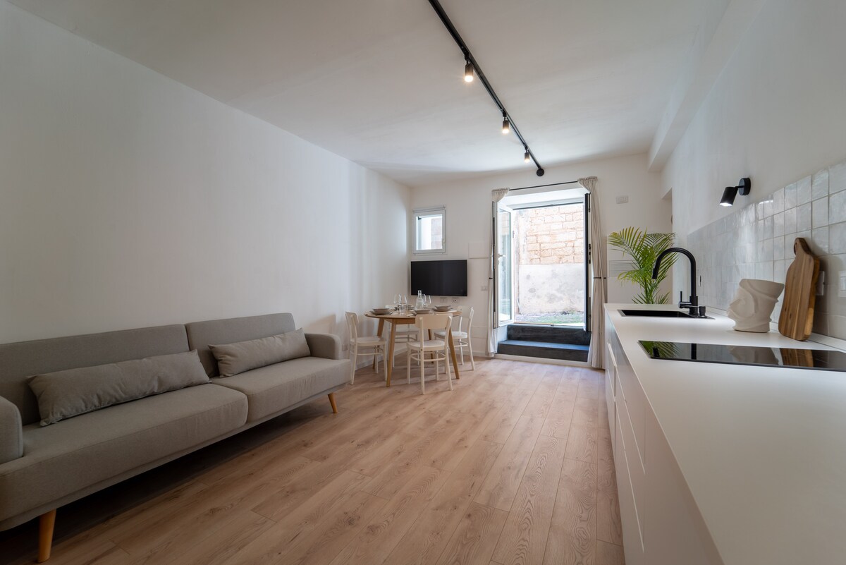 Onlangs gerenoveerd appartement, klein, maar van alle gemakken voorzien, met eigen ingang en badkamer, houten zonneterras, airco, keuken, tafel, stoelen, magnetron, koelkast, tweepersoonsbed, kast, strijkijzer en strijkplank, haardroger, boekenkast, bureau, tv en WiFi. In het bovenste deel van het historische centrum, op een perfecte strategische locatie, met supermarkten, geldautomaten, winkels, restaurants, bars, stranden en alle basisvoorzieningen gemakkelijk te voet bereikbaar.