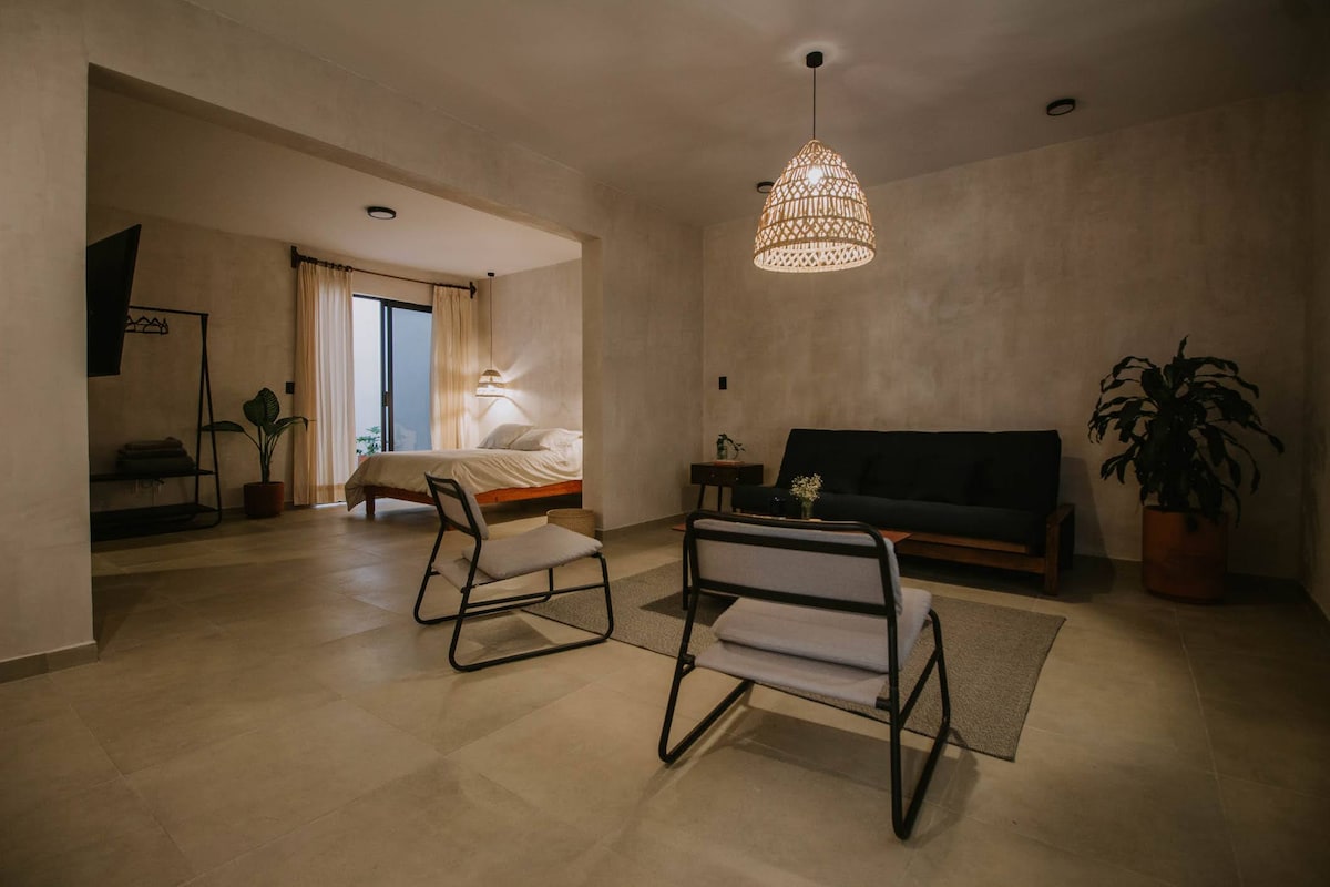 Fantastische studio met hoogwaardige handgemaakte meubels en een matras van hotelkwaliteit. Geschikt voor maximaal 4 gasten, omdat de bank kan worden omgevormd tot een bed voor twee volwassenen. Franse deuren openen naar een eigen balkon met daglicht. Op loopafstand van lokale winkels en het Aljojuca-meer (10–15 minuten). Op 19 minuten van Ciudad Serdán, met winkels, restaurants en busstation, en op 35 minuten van het vulkanische park. Ideaal om de omgeving te leren kennen of familie en vrienden te bezoeken.