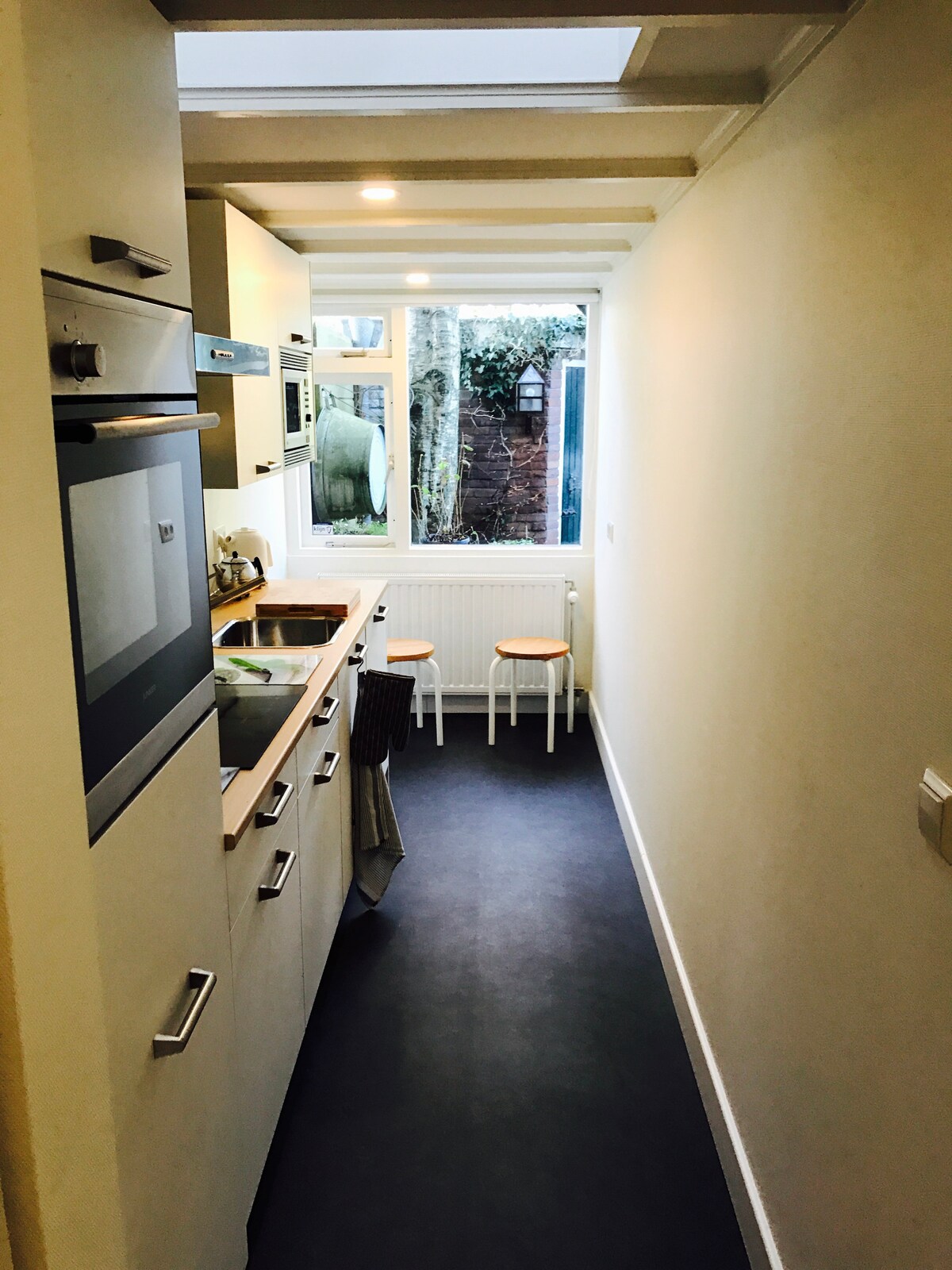 Dit nieuw modern verbouwde appartement is geschikt voor 2 personen. Zeer geschikt als rustige thuis werkplek Airco voorziening ! Het ligt in een van de mooiste straten van Alkmaar. Het centrum van Alkmaar is op 5 minuten loopafstand. De monumenten, grachten, winkels, musea en terrassen maken Alkmaar tot een sfeervolle stad. Op een halfuur van Amsterdam én een kwartier van het Noordzeestrand, per auto. Een mooie omgeving om fietsend te ontdekken. Het station 20min lopen van het appartement.