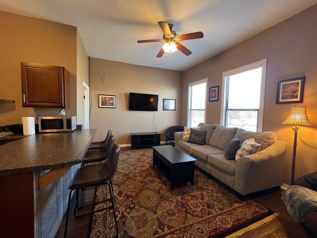 Dit is een schattig huisje aan de zuidkant van de stad. Als je een half blok naar het zuiden loopt, zie je een veeweide en een grote gemeenschapstuin. Er is een prachtige luswandeling naar het zuiden die je het gevoel geeft dat je op het platteland bent en de supermarkt ligt op korte wandelafstand! Je bent ook niet ver van het grootste stadsplein van Amerika. Iola heeft prachtige fietspaden en een fietsdeelprogramma waarmee je gratis een fiets kunt lenen! We verwelkomen graag langetermijnboekingen!