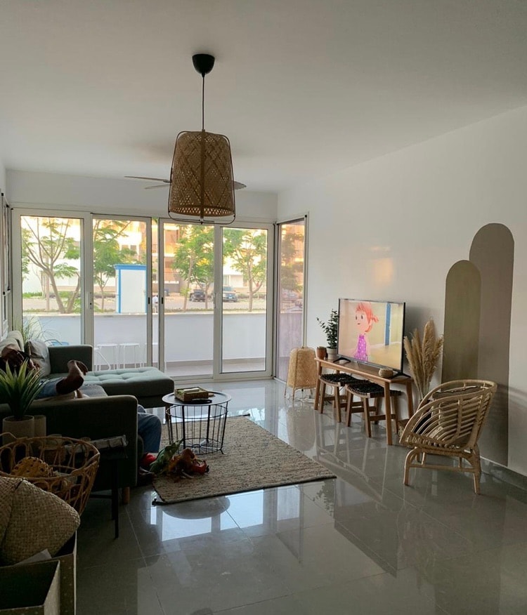 Live your best summer yet on the stunning shores of AlMaza. Our sunny apt is waiting to welcome you to the best location in Sahel. Located in Beachtown, not even a 10-minute walk to the beach, near TBS, it’s the perfect home base. Beach passes included. This 2-bedroom, 2-bath apt brand new furnishings and amenities (dishwasher, washing machine, etc.) Master bedroom features Queen bed, en-suite bathroom and private balcony. Second bedroom has two beds. Couch converts to a full size bed.