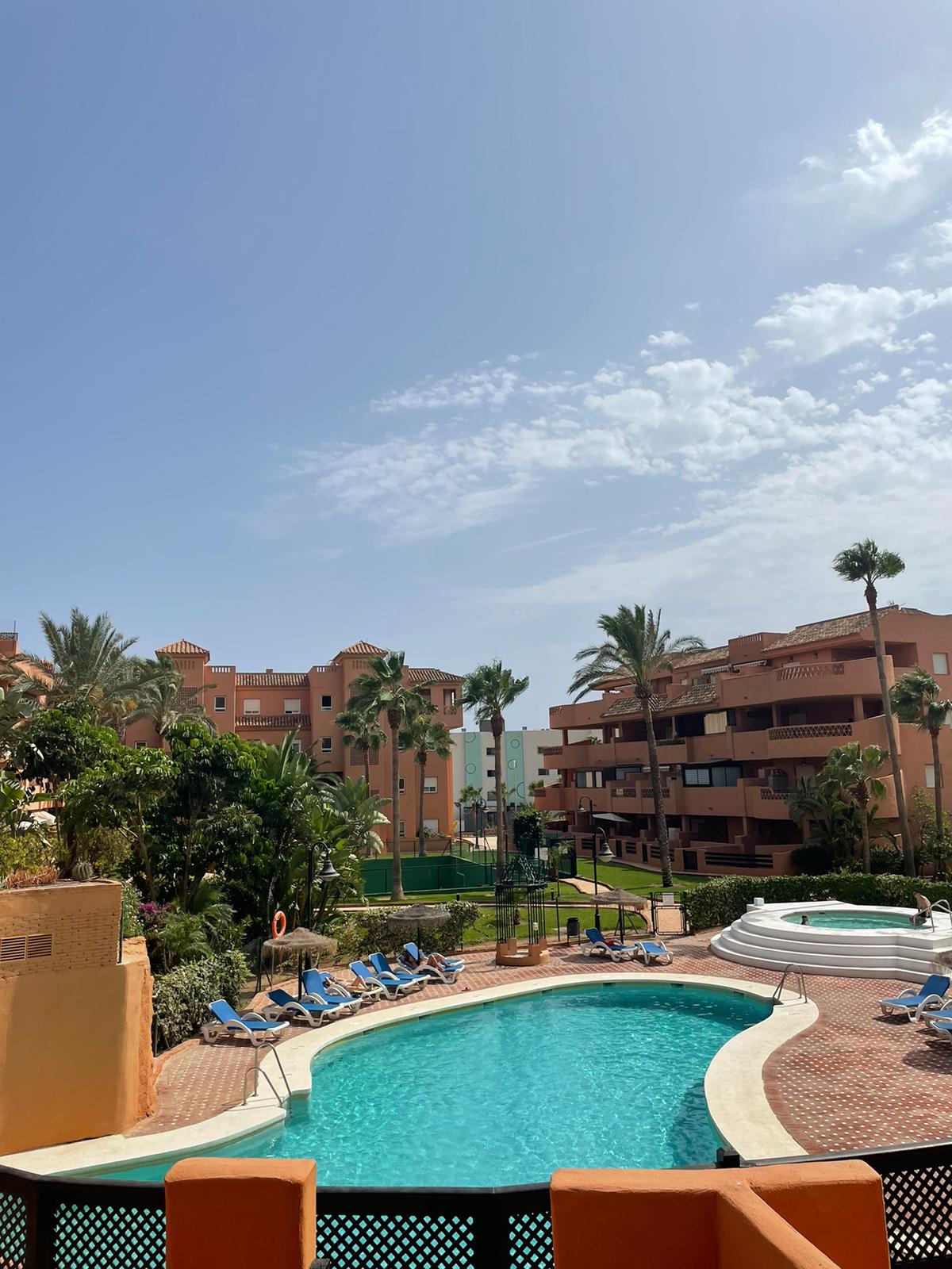 Dit gezellige familie appartement met een gezellig tuintje met prachtig uitzicht op het zwembad. 2 slpk met grote bedden (180x 200) en 2x(90x200) 2 mooie badk. Elke ruimte beschikt over airco. De keuken is volledig uitgerust. De urbanisatie is uitgerust met 3 zwembaden (ook een overdekt binnenzwembad), 2 padel en 2 tennis terreinen.. Het is super rustig gelegen maar toch veel activiteiten in de nabije omgeving oa winkels, bars, beach clubs, resto, aquapark, zee ,.. Hier kun je volledig genieten