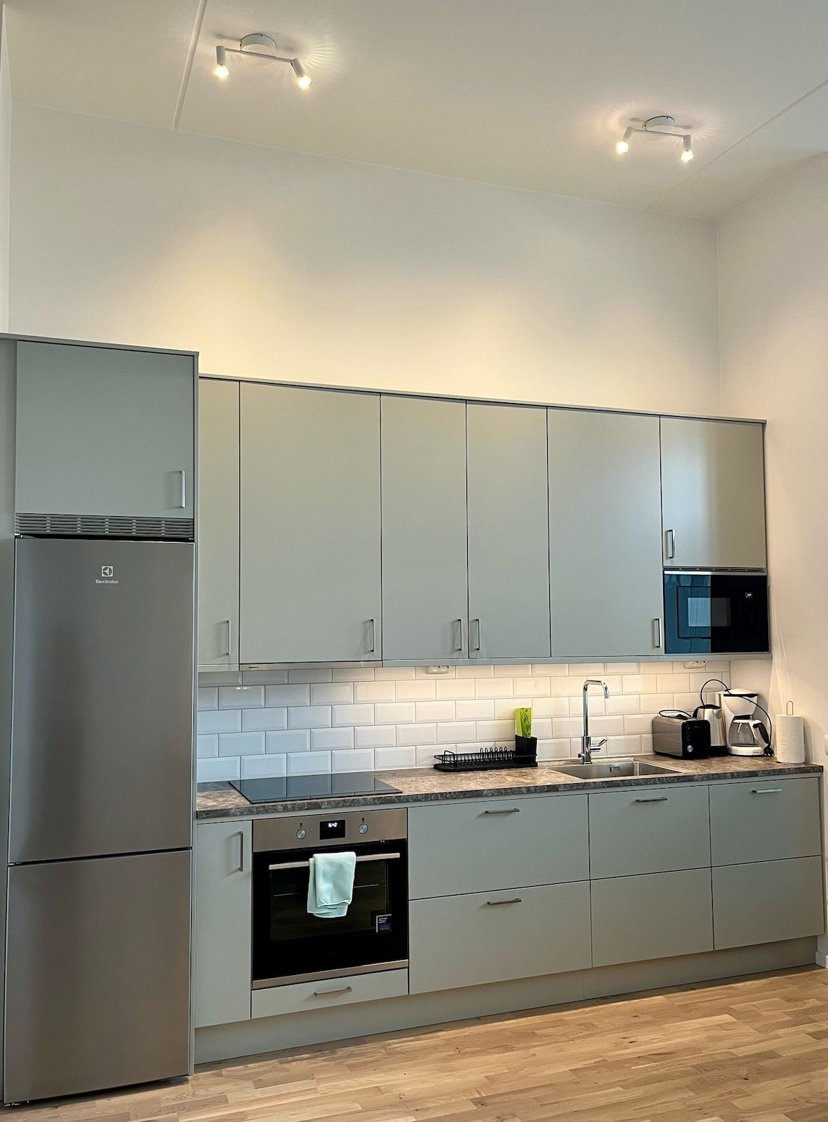 Fresh and newly built studio apartment with a lot of sunlight. - King size bed 210x210 cm - Convertible sofa 145x200 cm The whole apartment is 55 m² and all yours during your stay. - Free parking on the street right outside the house - Grocery store nearby - 2 bus stations nearby. 20-30 min to the city center by bus - 15 min to city center by car If you have any questions, please don’t hesitate to ask!