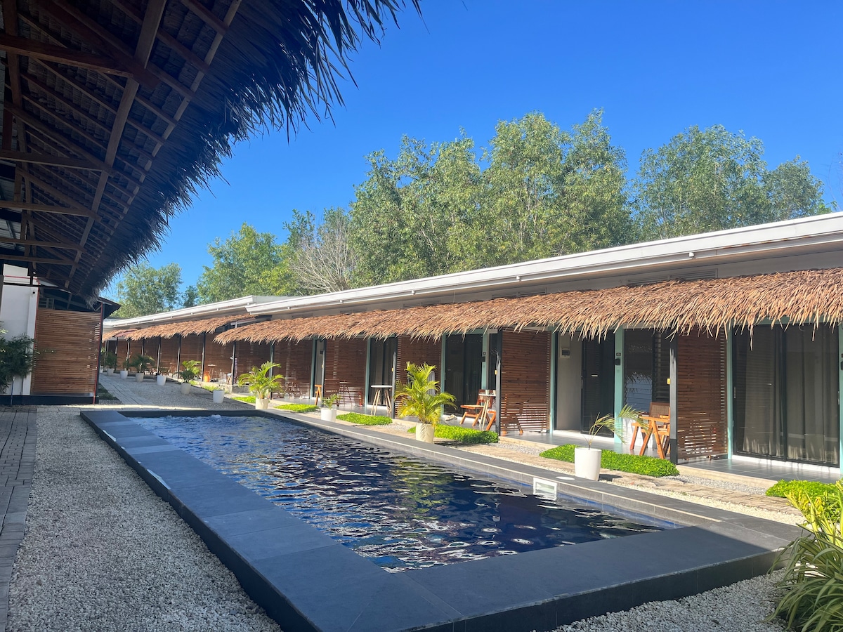 Lichte en gezellige kamer met een op het strand geïnspireerd design, perfect voor je eilanduitje! Beschikt over twee comfortabele tweepersoonsbedden, airconditioning en houten meubels. De charmante inrichting is voorzien van muurkunst met een zeethema. Ideaal voor ontspanning of als uitvalsbasis om de ongerepte stranden en het zeeleven van Bohol Island te verkennen. Geniet van een sereen, stijlvol verblijf in het paradijs!
