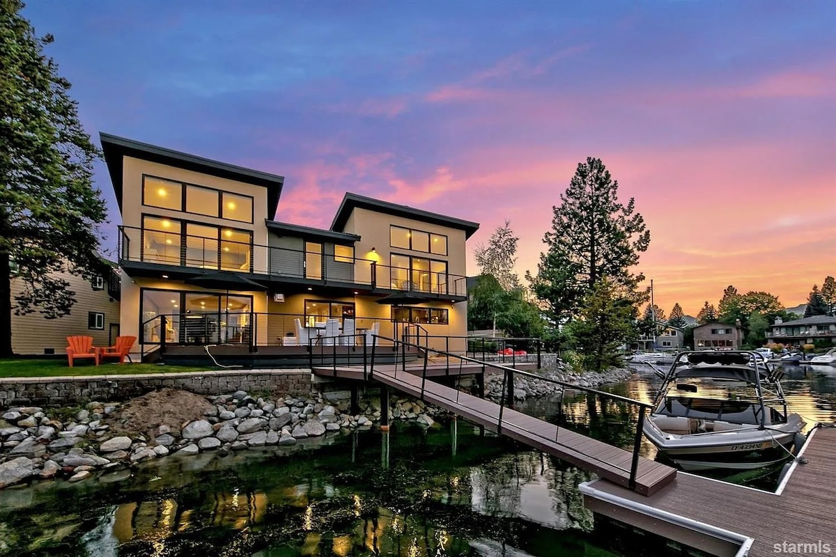 Luxurious Lake Tahoe Vacation Rental with Private Boat Dock, Hot Tub & Mountain Views – Located in Tahoe Keys. Max Occupancy is 12 but children aged 13 and under do not coun Escape to luxury in the heart of Lake Tahoe, California, with this spectacular waterfront vacation rental located in the exclusive Tahoe Keys community. This stunning multi-level home offers the ultimate Lake Tahoe getaway, complete with a private boat dock, breathtaking views of Mount Tallac, and direct access to the lake.