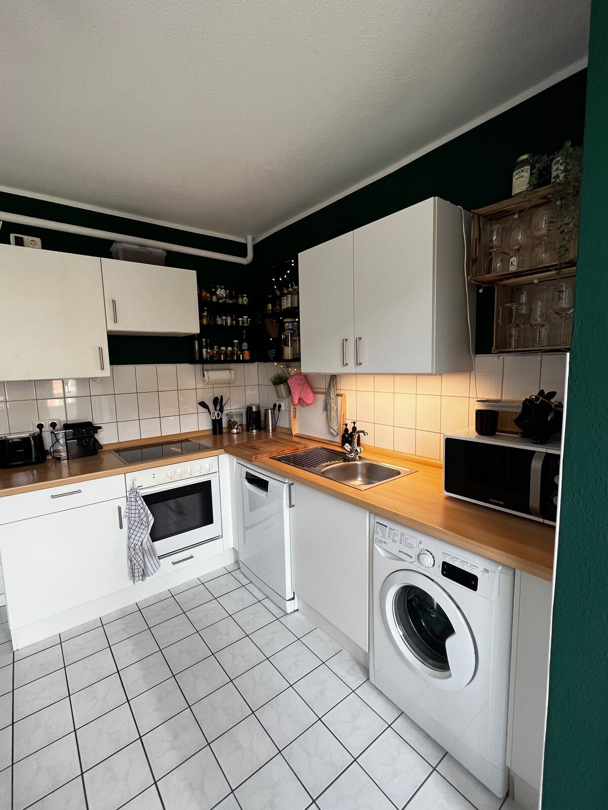 Je woont in mijn kleine geadverteerde en onlangs gerenoveerde herenhuis in een idyllische omgeving. Je hebt één slaapkamer met een 2 persoonsbed, een badkamer en de keuken-woonkamer voor eigen gebruik. Het S-Bahn-station ligt op 3 minuten lopen, naar de luchthaven 2 stations, het centrum 20 minuten. Gratis parkeren kan in de privéstraat. Winkelfaciliteiten liggen op 3 minuten loopafstand. Hardloop- en fietsroutes voor de deur.