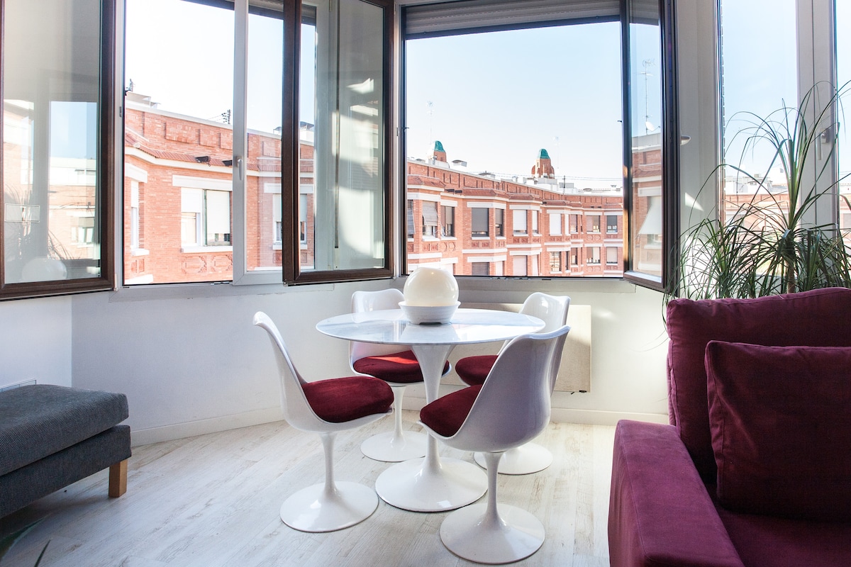 Kleine loft met eigen patio in een oud huis uit 1936, tussen de Stad van Wetenschappen (10 minuten lopen) Ruzafa (5 minuten lopen) en Roig Arena 5 minuten, zeer rustig en veilig (naast het politiebureau) en een wandeling van het historische centrum 20 minuten, strand 10 minuten met de bus. Er is een tweepersoonsbed 1,40/2,00 m, een loft met nog een tweepersoonsbed 1,40/2,00 m/lakens en dekbed in de winter. Verwarming / airconditioning. TV Gratis 600 MB wifi. Gezinnen met kinderen zullen het heerlijk vinden om in de loft te slapen.