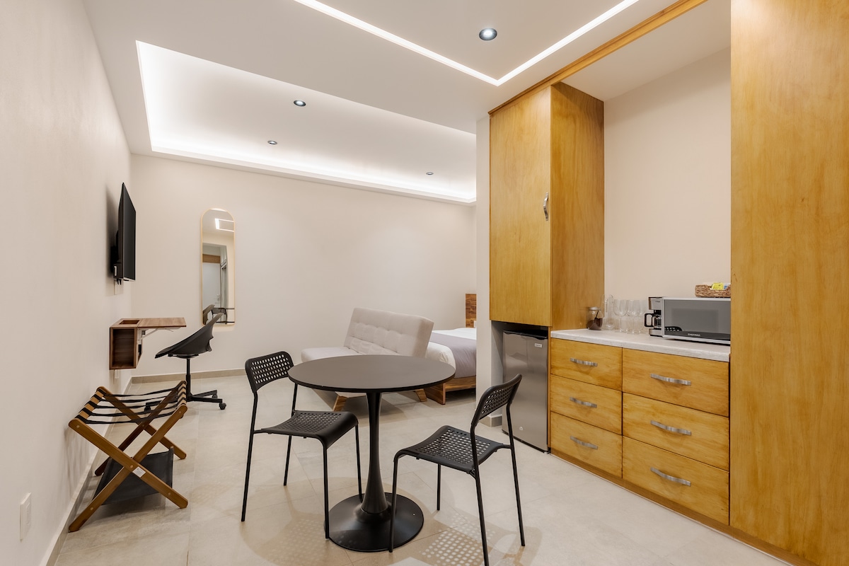 Je staat op het punt je volgende verblijf te ontdekken. We verwelkomen je graag in onze appartementen. Dit gebouw ligt niet alleen op een toplocatie, maar vertelt ook een verhaal dat de hedendaagse Mexicaanse kunst en cultuur viert. Elke hoek is ontworpen om je te inspireren, van handgemaakte Talavera-stukken uit Puebla tot iconische citaten van gerenommeerde Mexicaanse creatievelingen zoals Octavio Paz en Alejandro González Iñárritu. Bovendien kun je genieten van een van de beste uitzichten van de stad.