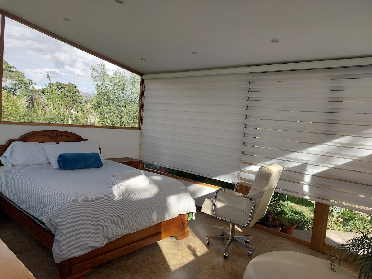 Dompel jezelf onder in de sereniteit van dit huisje, gelegen in een bevoorrechte natuurlijke omgeving. Perfect om de drukte van de stad te ontvluchten, het biedt ruime binnen- en buitenruimtes ideaal om te delen met familie en vrienden. De accommodatie biedt totale privacy en de mogelijkheid om te genieten van picknicks of barbecues onder de zon of de maan. Het heeft een prachtige jacuzzi met een prachtig weids uitzicht. We zijn op 10 minuten van de stad Ambato, op 35 minuten van de stad Baños.