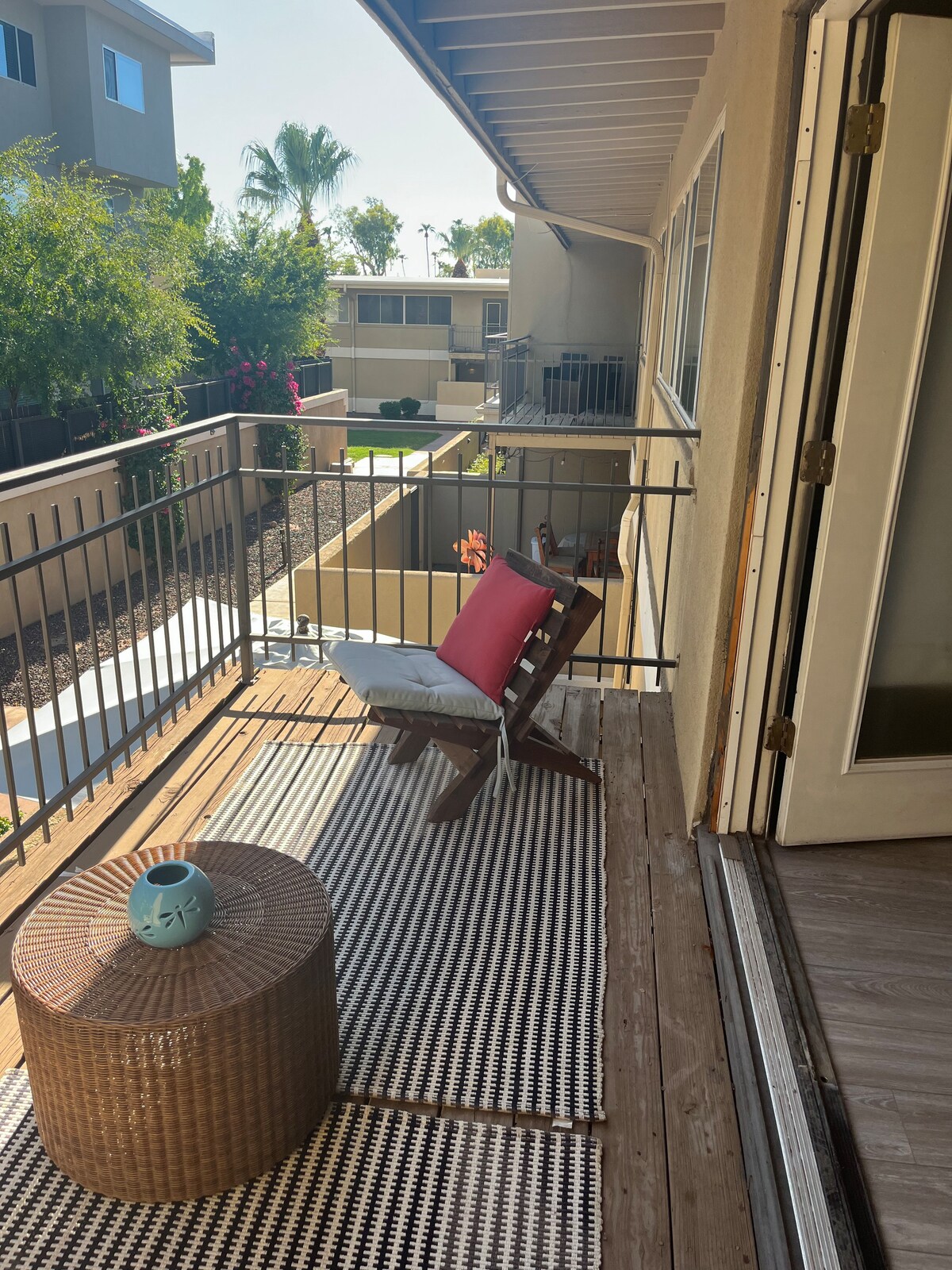 Ruim appartement met uitzicht op de tuin, centraal gelegen in het zeer gewilde Phoenix Biltmore Park-gebied, een prachtige locatie. Het moderne appartement uit het midden van de eeuw ligt verscholen in een rustige omheinde gemeenschap, zeer dicht bij de beroemde must-see Arizona Biltmore Golf Course & Resort, en op loopafstand van Biltmore Park Mall, Whole Foods, Trader Joes, AMC Theatre en vele andere fantastische plekken om te winkelen, wijn te eten en te dineren. .