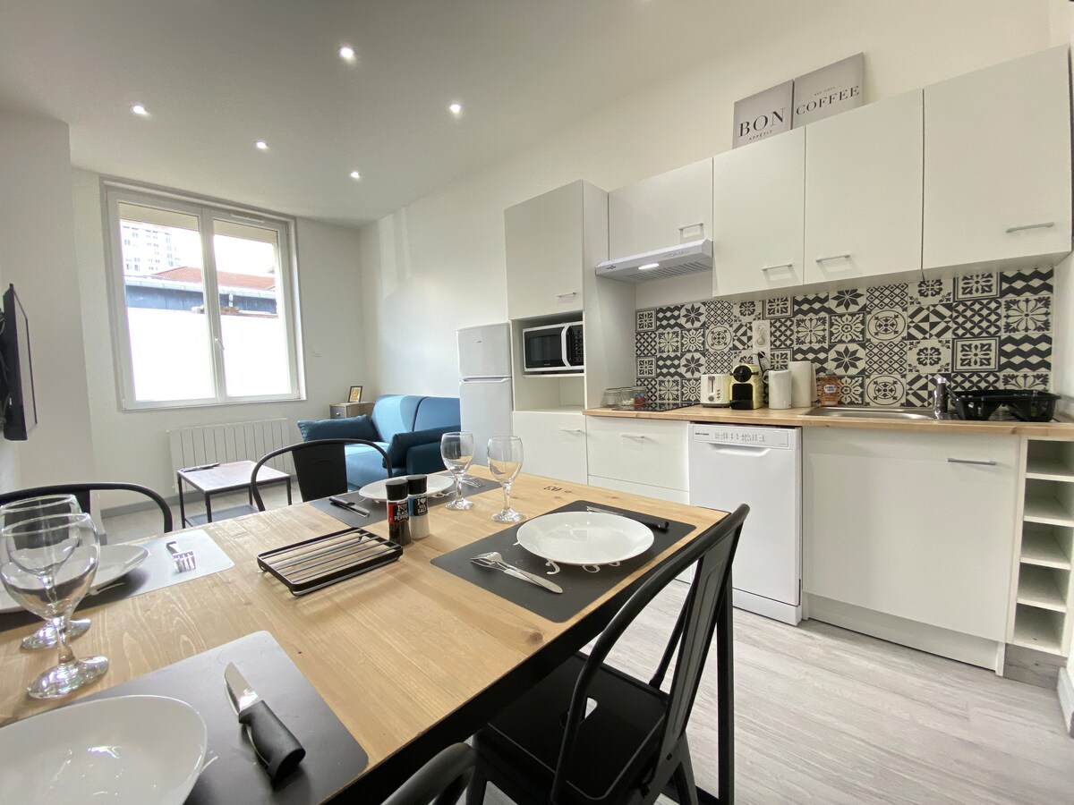 Kleine gezellige cocon op de eerste verdieping, met zijn authentieke parketvloer dicht bij de kathedraal, en de kerstmarkt op 200 m afstand, kom en stop in onze prachtige stad Amiens. Je hebt het hele appartement toegankelijk met twee toegangscodes, dus inchecktijden zijn flexibel. De kerstmarkt, kathedraal, hortillonnages, Jules Verne huis, St Leu buurt en sfeerbars en nog veel meer te ontdekken. Rookvrij.