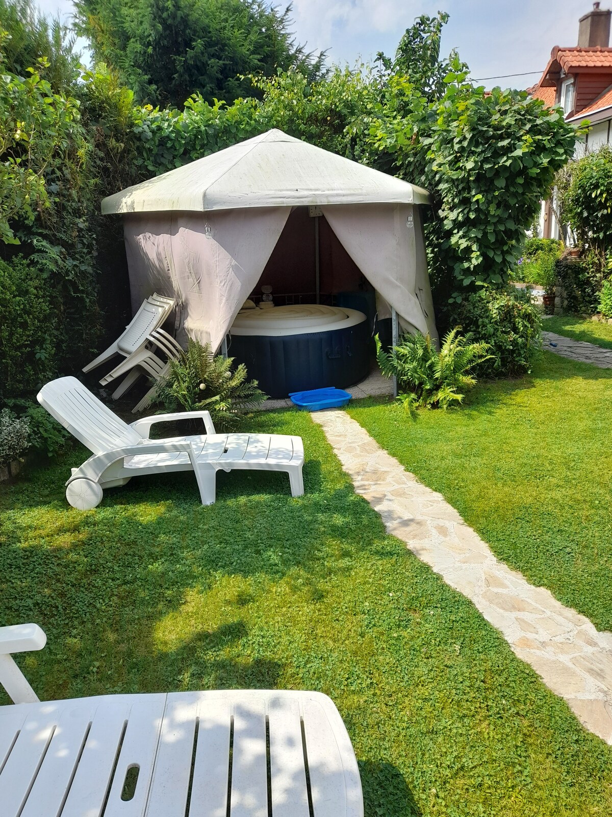 Modern paviljoen met grote goed uitgeruste tuin