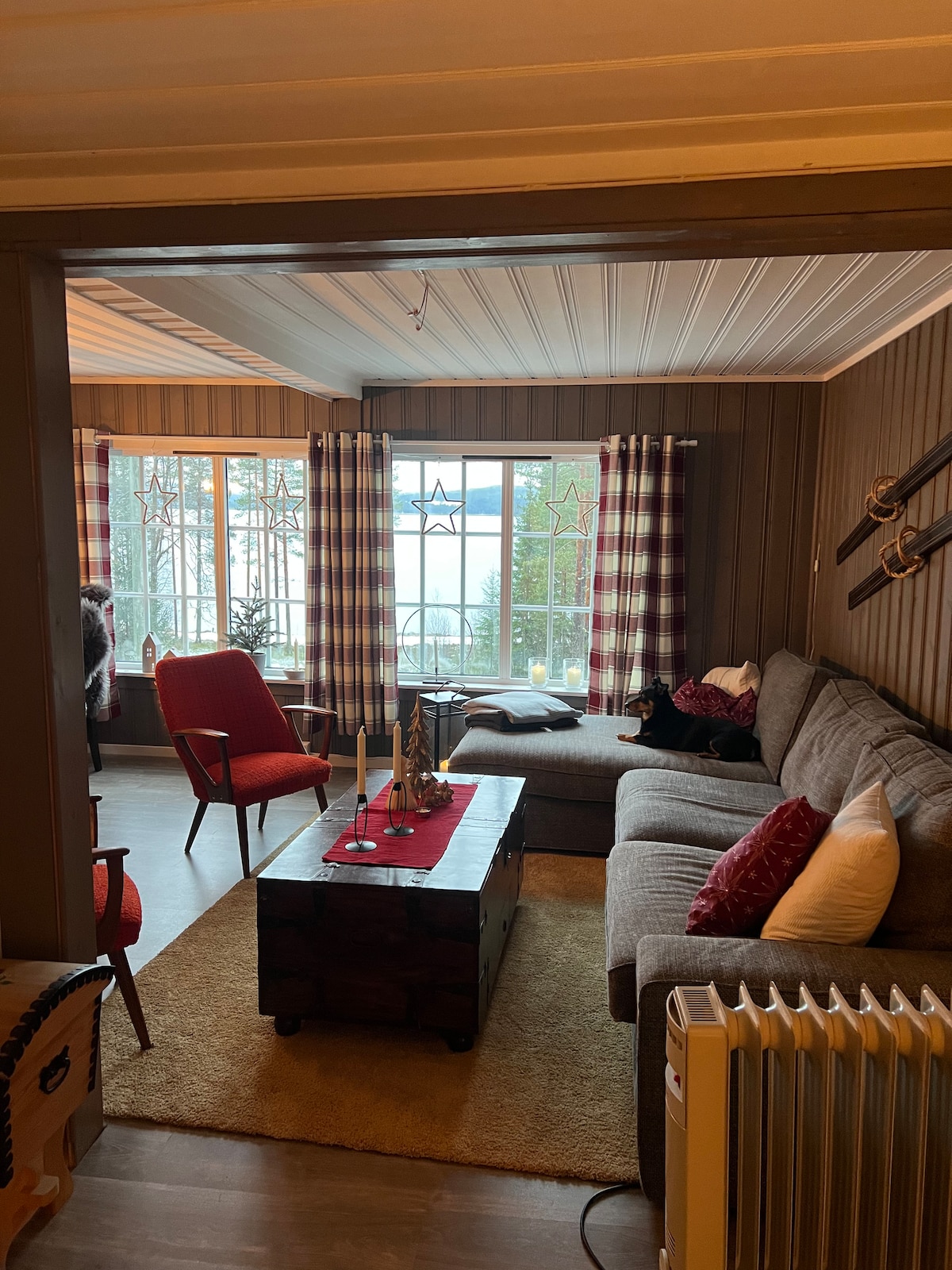 Flott tømmerhytte i naturskjønne omgivelser